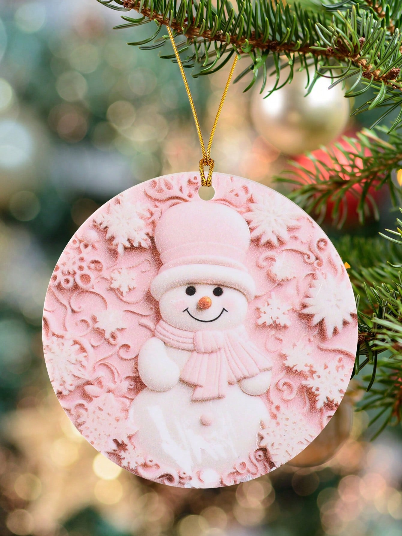 This Pretty in Pink ornament is the perfect addition to your Christmas tree. With a charming and romantic snowman design, this acrylic ornament will add a touch of whimsy to your holiday decor. Made with high-quality materials, it is durable and long-lasting for years of enjoyment.