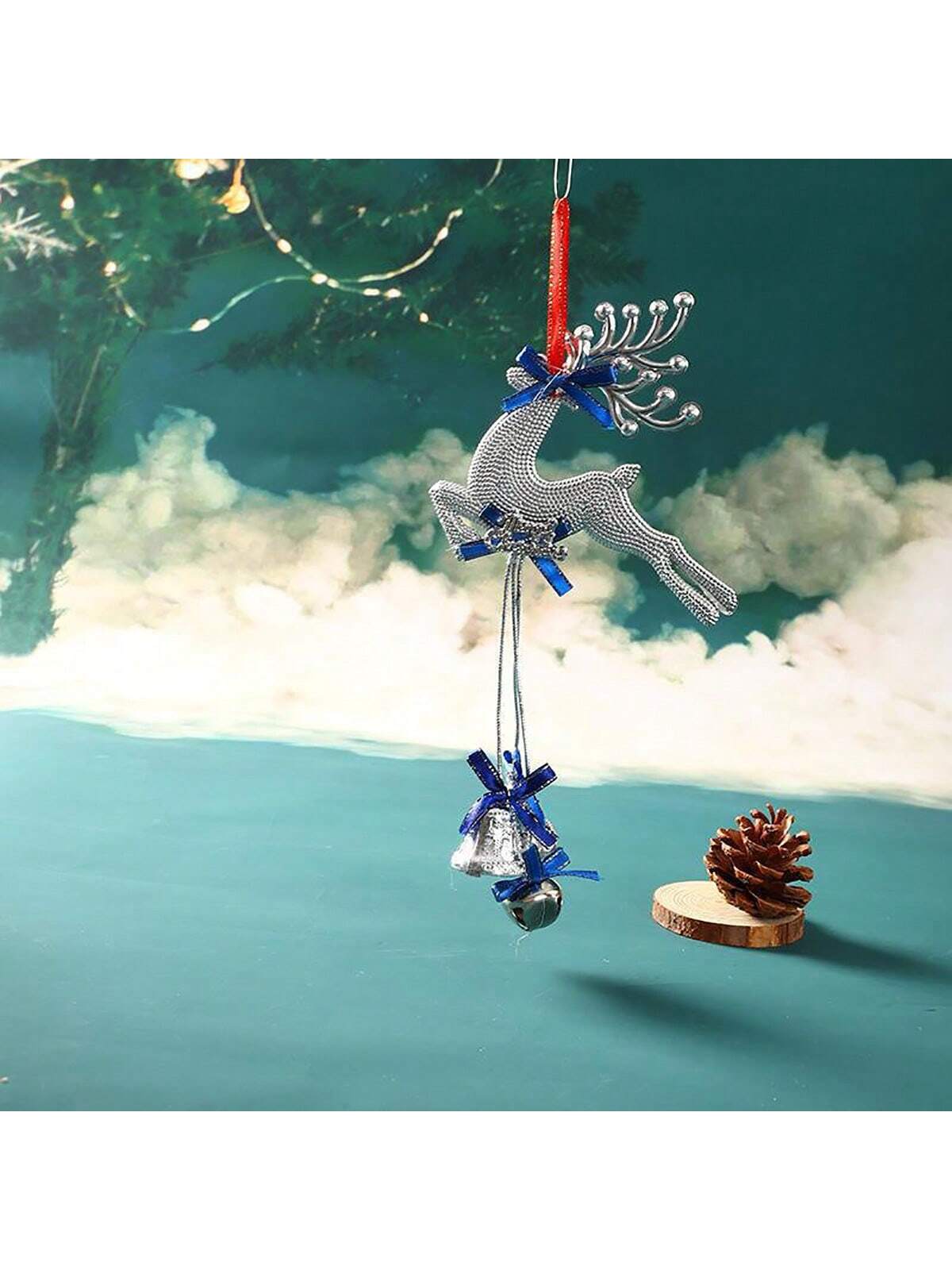 4.Festive Christmas Elk Bow Bell Pendant.