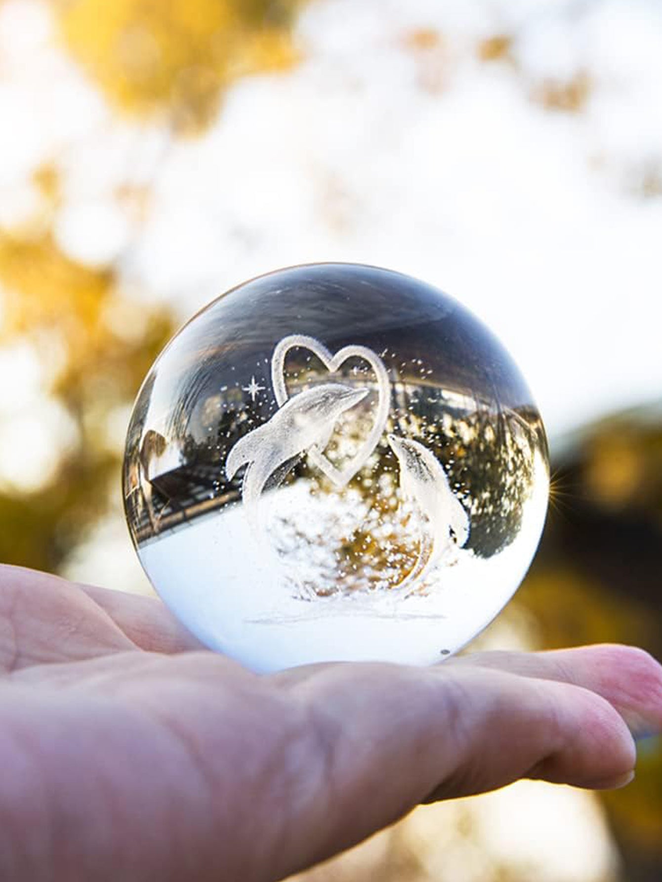 Enhance your home decor with the Dolphin Magic Crystal Ball Night Light. The elegant design features a crystal ball with a swimming dolphin inside, adding a touch of underwater charm to any room. With its soft and calming light, this night light creates a peaceful atmosphere for relaxation.