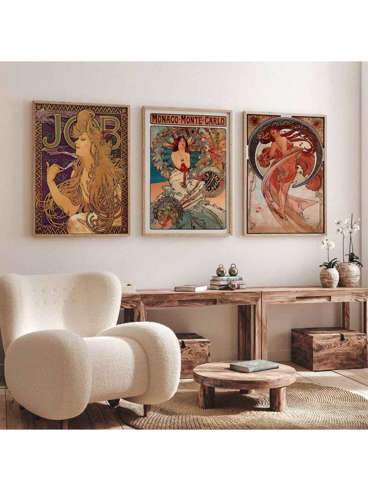 Enhance your bedroom decor with our 3pcs Vintage Art Nouveau Style Portrait Print Posters. Featuring elegant and intricate designs, these prints bring a touch of sophistication to any space. Made to last, our posters are perfect for adding character without the need for framing.