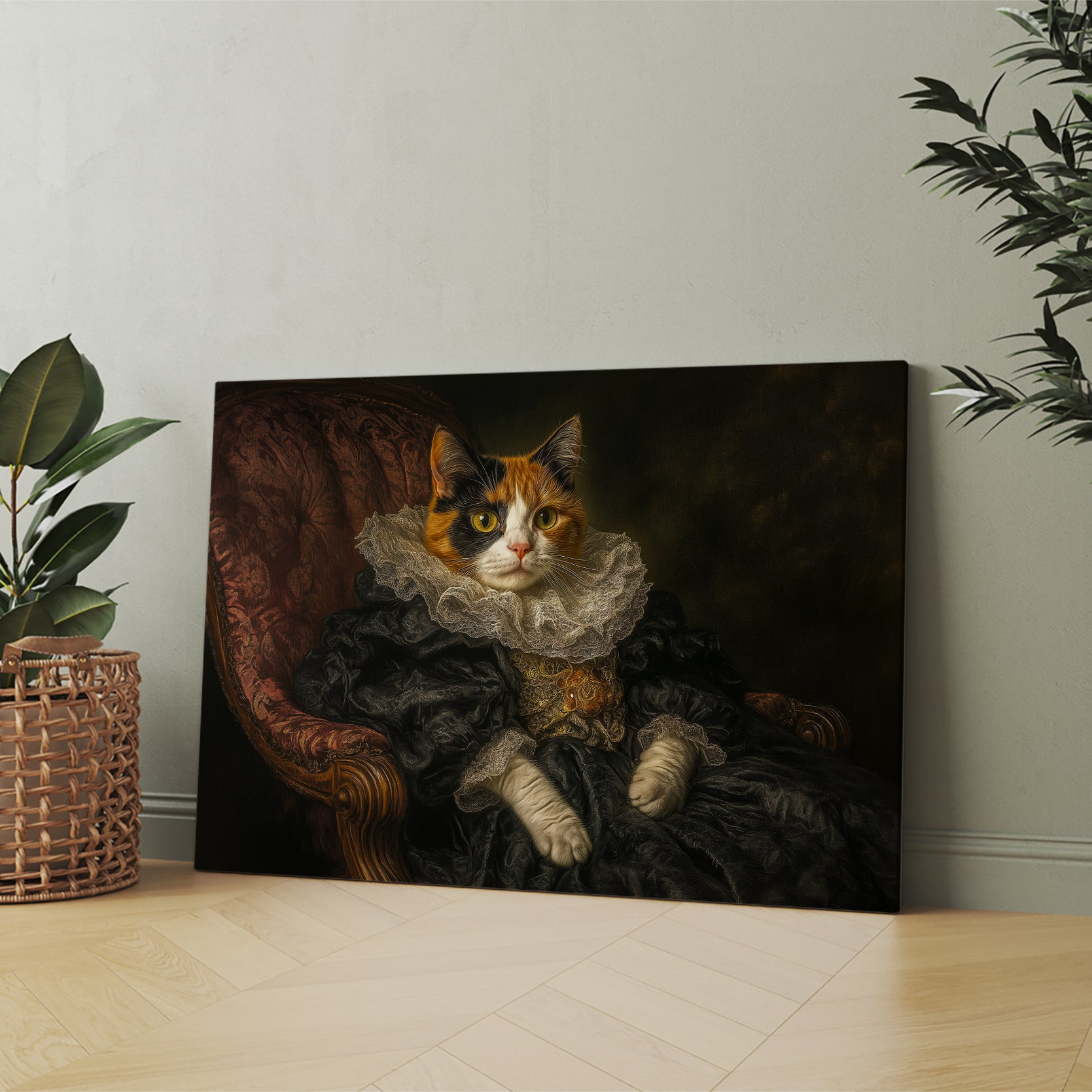 Add a touch of elegance and charm to your home decor with our Renaissance Style Cat Portrait Canvas Wall Art. Featuring stunning Victorian Royal Pet Photography, this piece makes the perfect addition to your living room, sofa backdrop, or bedside.
