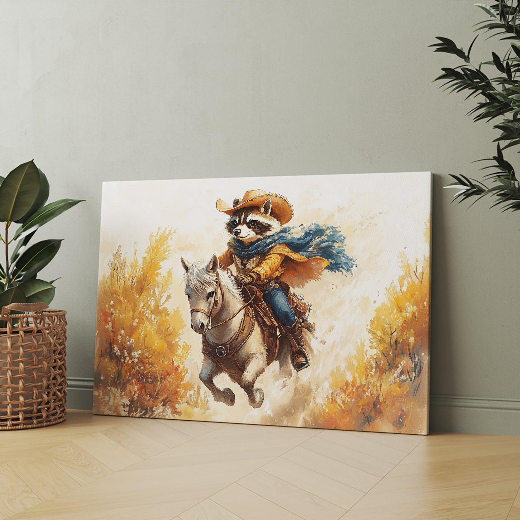 3.Whimsical Cowboy Raccoon Canvas Wall Art.