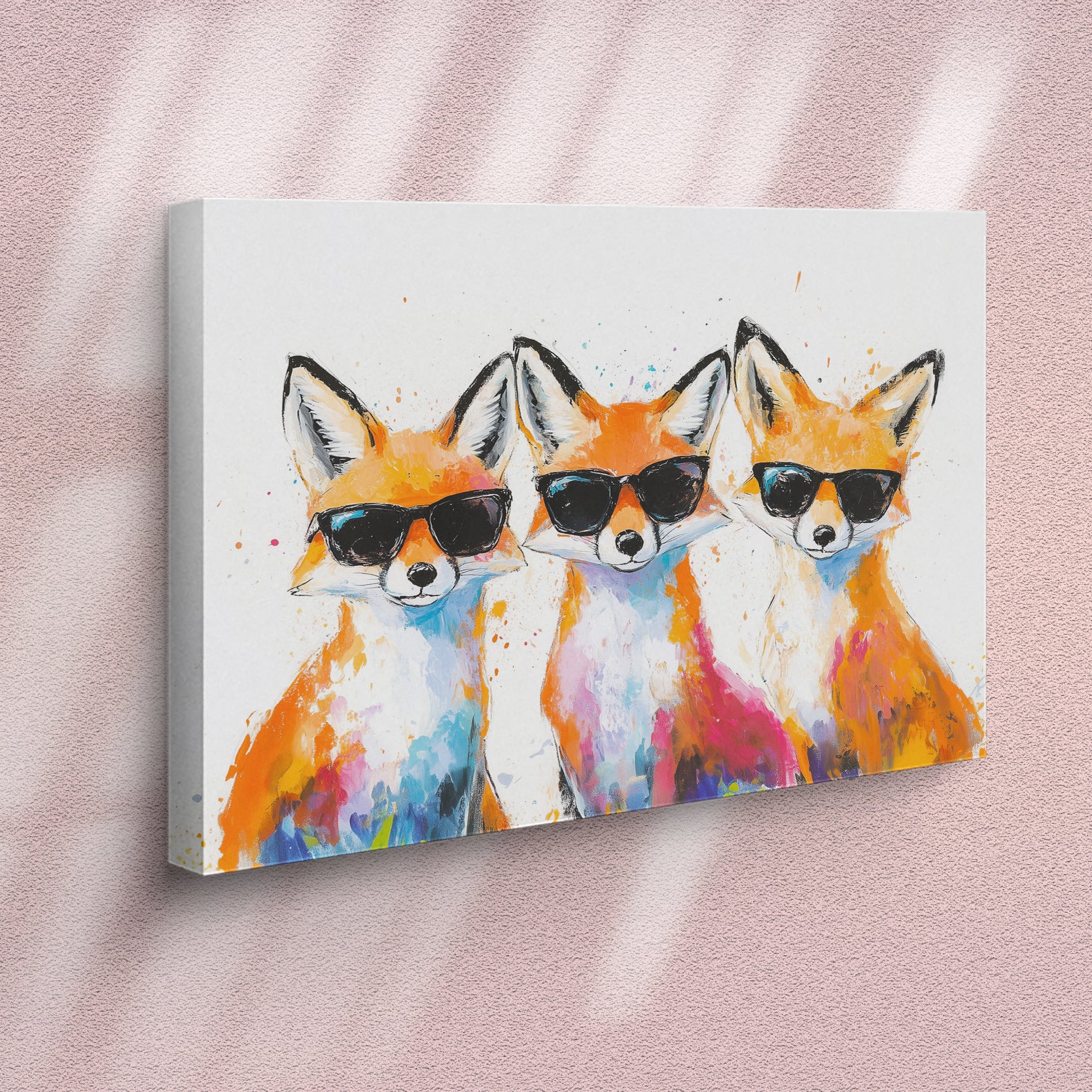 5.Cool Fox Canvas Wall Art, Colorful Watercolor Print with Sunglasses.