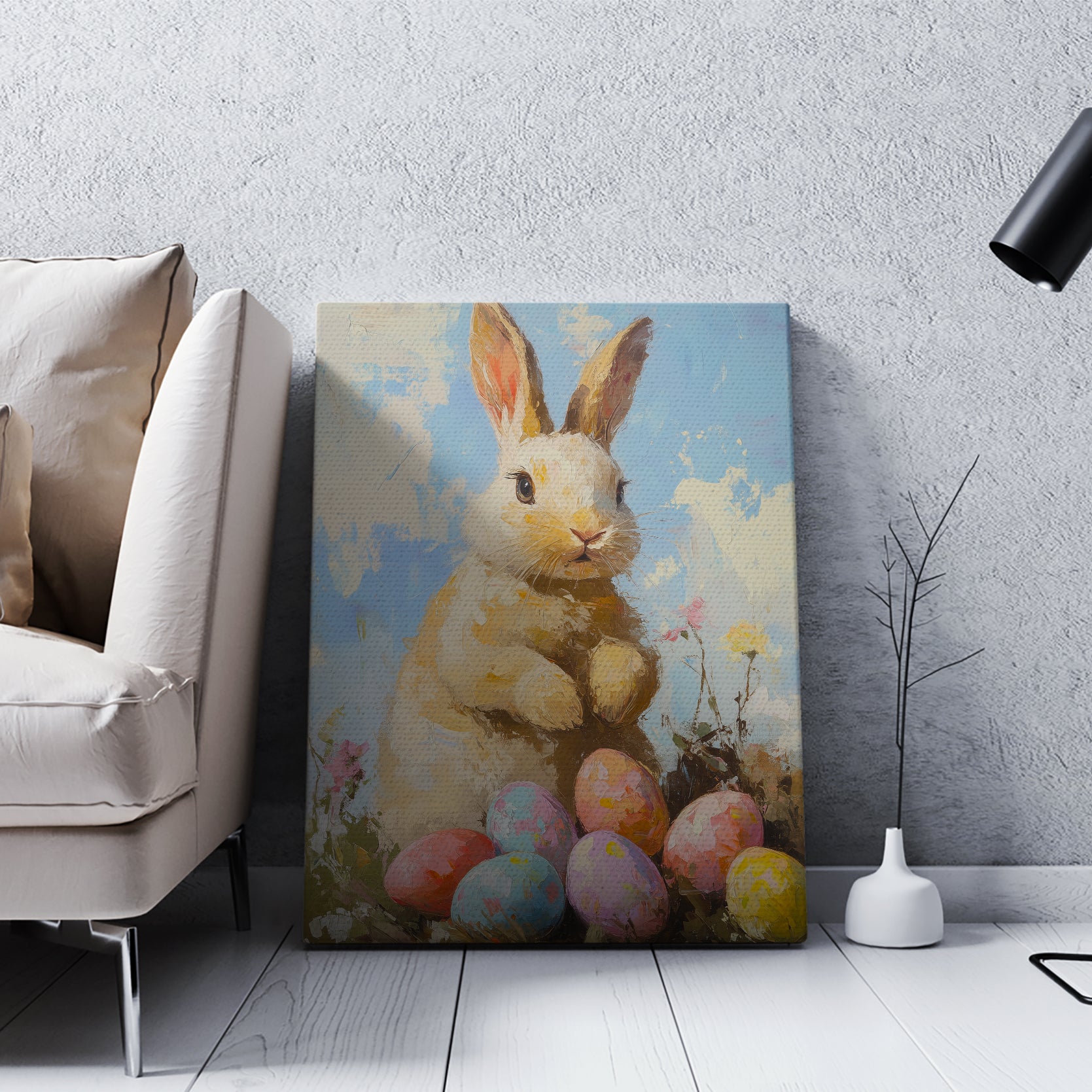 Enhance your home decor with our Easter Bunny Canvas Wall Art. Featuring a cute bunny surrounded by colorful Easter eggs, this canvas brings a touch of spring to any room. Perfect for living rooms, sofas, or bedside decorations, it's a great way to bring some festive cheer into your home.