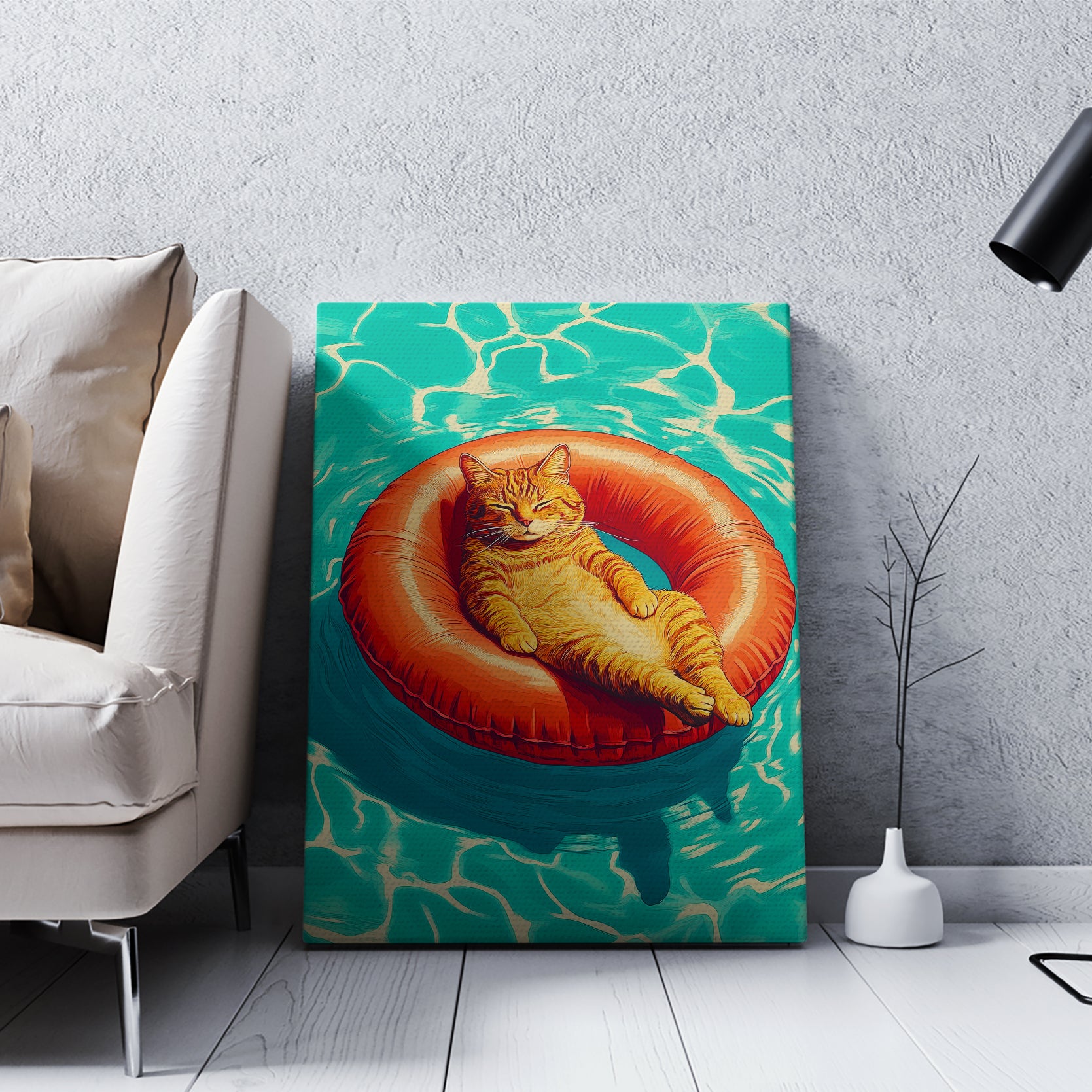 12.Funny Cat Pool Float Wall Art Canvas - For Living Room.