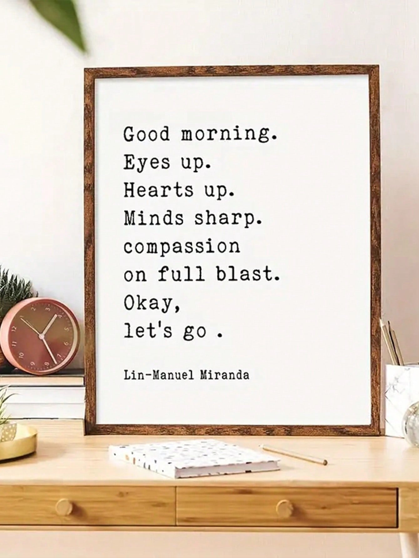 Elevate your space with the Uplifting Lin-Manuel Miranda Canvas Poster. This inspirational 'Good Morning' wall art will add a touch of motivation to your decor. Let the empowering words of Lin-Manuel Miranda inspire you to start your day off on the right foot.