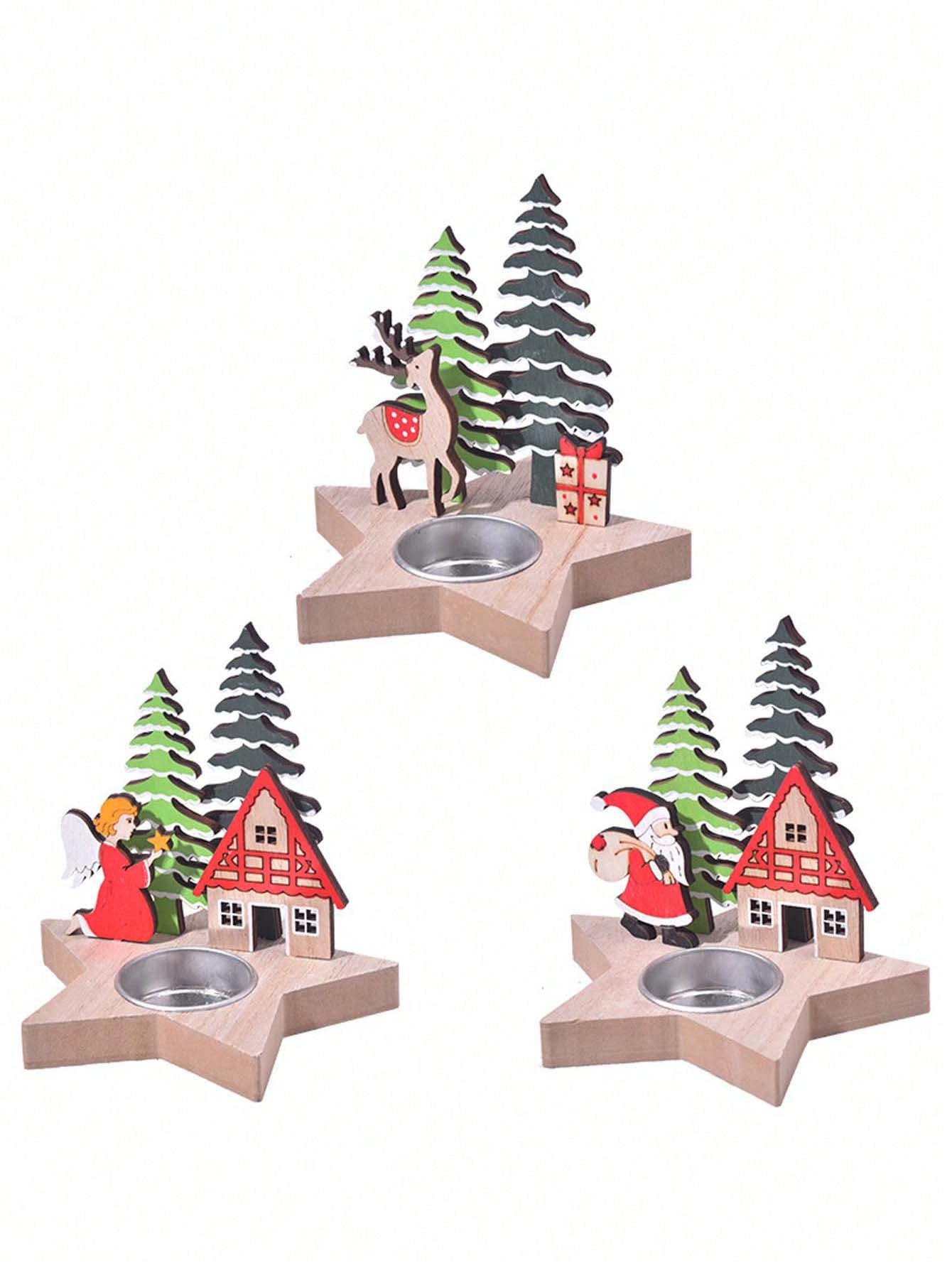 Rustic Wooden Christmas Candlestick Tabletop Decoration.
