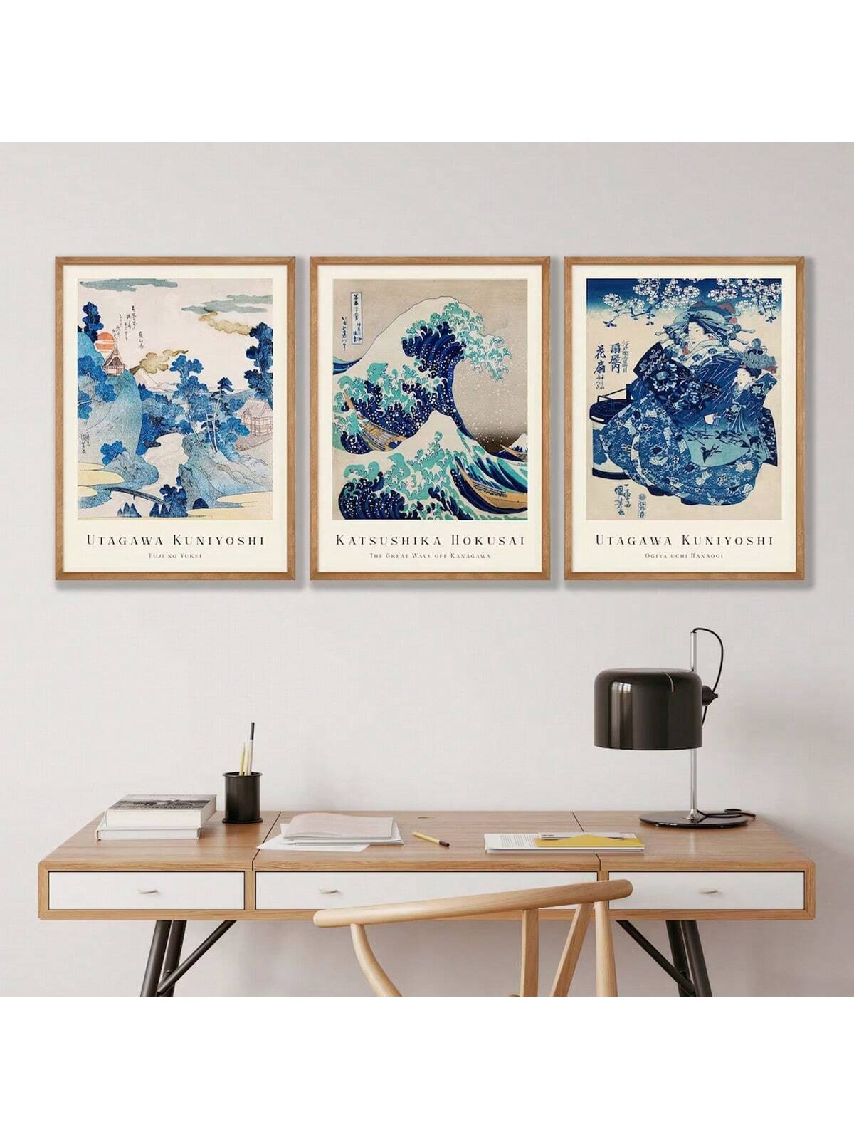 Delve into the beauty of traditional Japanese art with our vintage canvas wall art set. Featuring the world-renowned masterpiece "The Great Wave" by Hokusai, this 3-piece gallery print decor will add a touch of sophistication and cultural flair to any room. Each piece is crafted with precision and high-quality materials for a lasting and authentic feel.