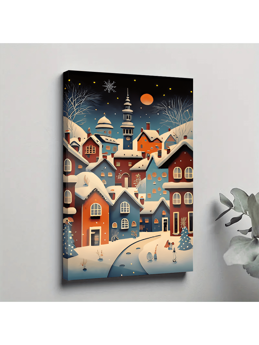 4.Charming Vintage Christmas Town Framed Canvas Art.