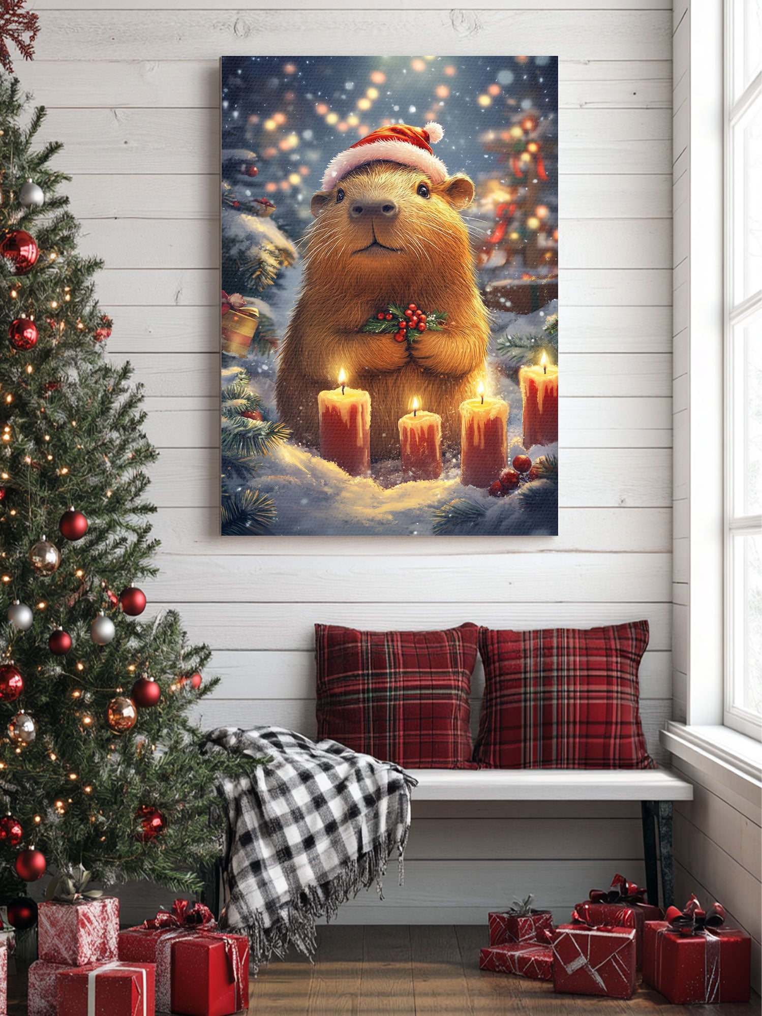 8.Capybara Christmas Candel Canvas Poster Wall Arrt.