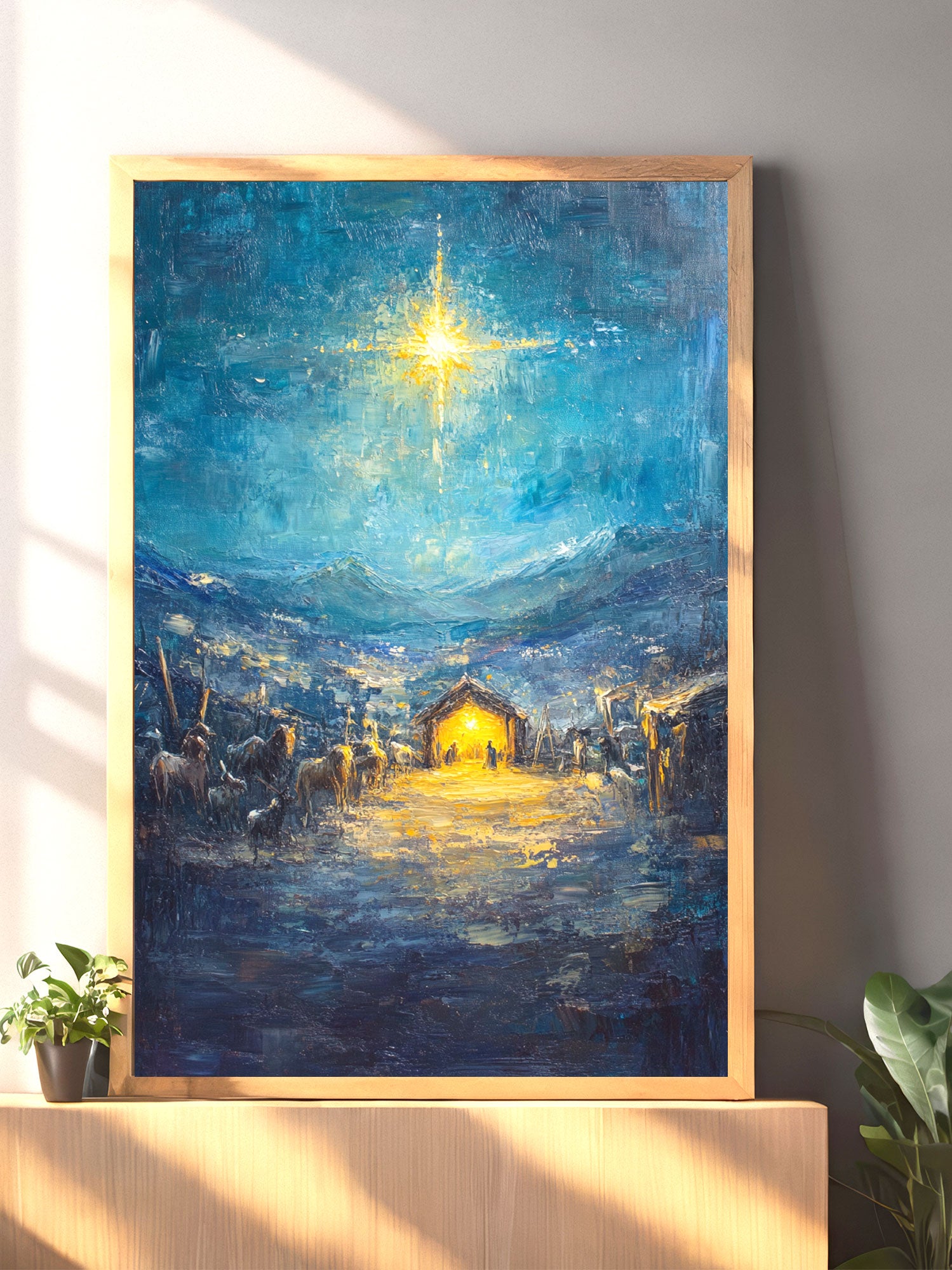 This stunning canvas poster features a depiction of God's house under the stars. Perfect for decorating your living room, sofa backdrop, or bedside, this piece brings a touch of spirituality to your home. Made with high-quality materials and without a frame, it is a versatile addition to any home decor.
