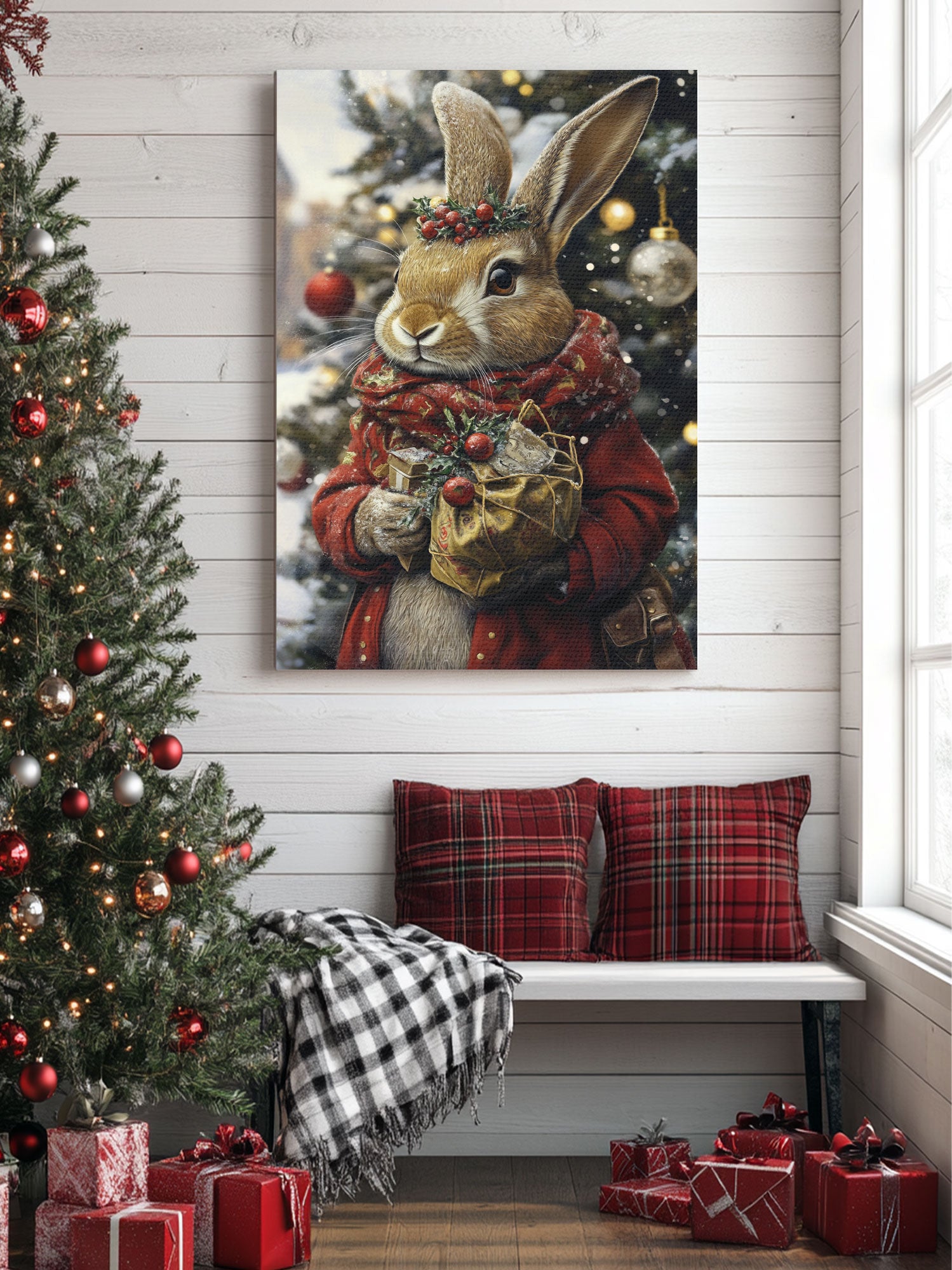 Enhance the festive ambiance of your living room, sofa backdrop, or bedside with The Rabbit And Christmas Canvas Poster Wall Art. Made from high-quality canvas, this poster adds a touch of holiday charm to your home decor. No frame included.