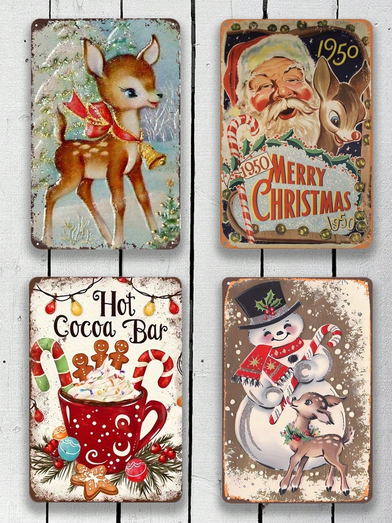 5.Vintage Christmas Elk Moose Metal Sign
