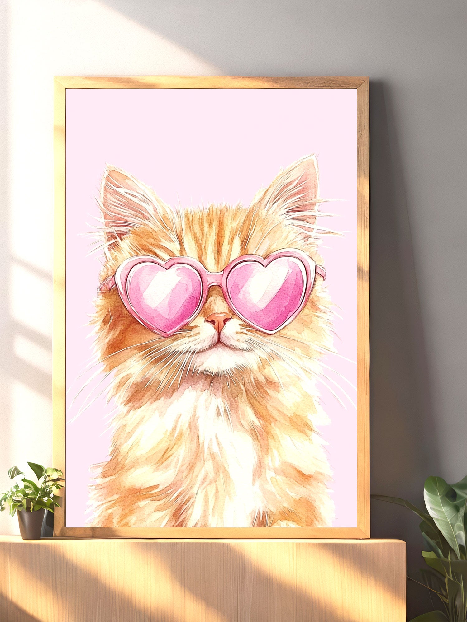 Elevate your home decor with this adorable Cute Cat With Glasses Canvas. Perfect for any living room, sofa backdrop, or bedside decoration. Its high-quality design features a no frame poster wall art, adding a touch of charm to any room. Order now and add a playful touch to your home.