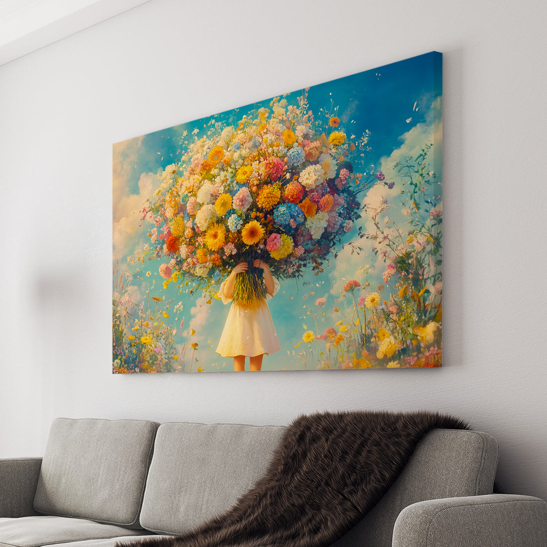 This vibrant Spring Garden Watercolor Canvas Wall Art features a stunning Yellow Floral Dress that...