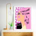 Add a playful and stylish touch to any girl's room with this Abstract Retro Cartoon Cat Wall Art Poster. Featuring a charming pink canvas design and witty quotes, it blends humor with vibrant retro aesthetics. Perfect for creating a cheerful atmosphere, this artwork is available with an optional frame to suit your décor preferences and ensure easy installation. Ideal for those seeking unique, expert-curated wall decor that combines fun and sophistication.