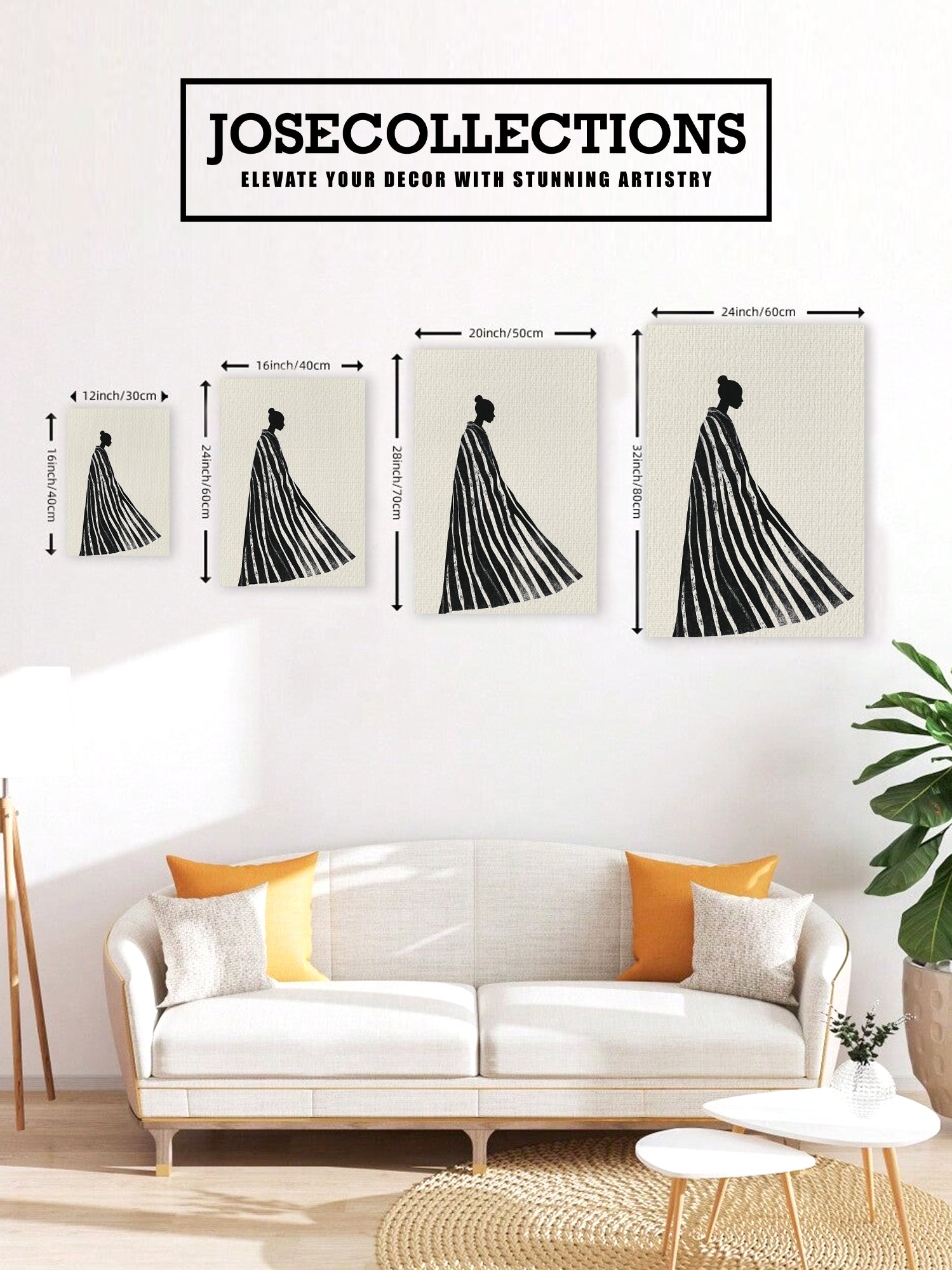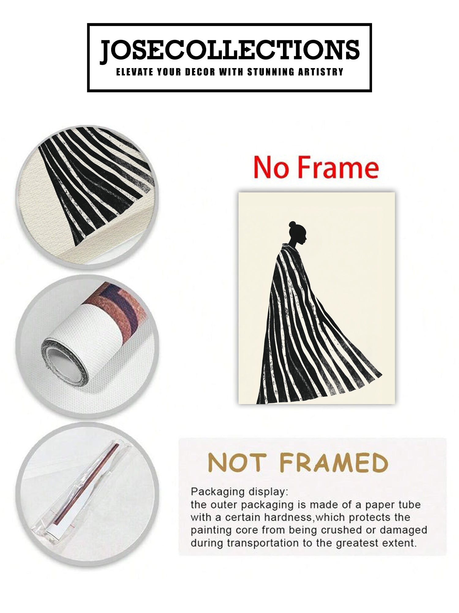 Black and White Striped Silhouette Wall Art - For Living Room, Sofa Backdrop, Bedside Decoration, Home Decor