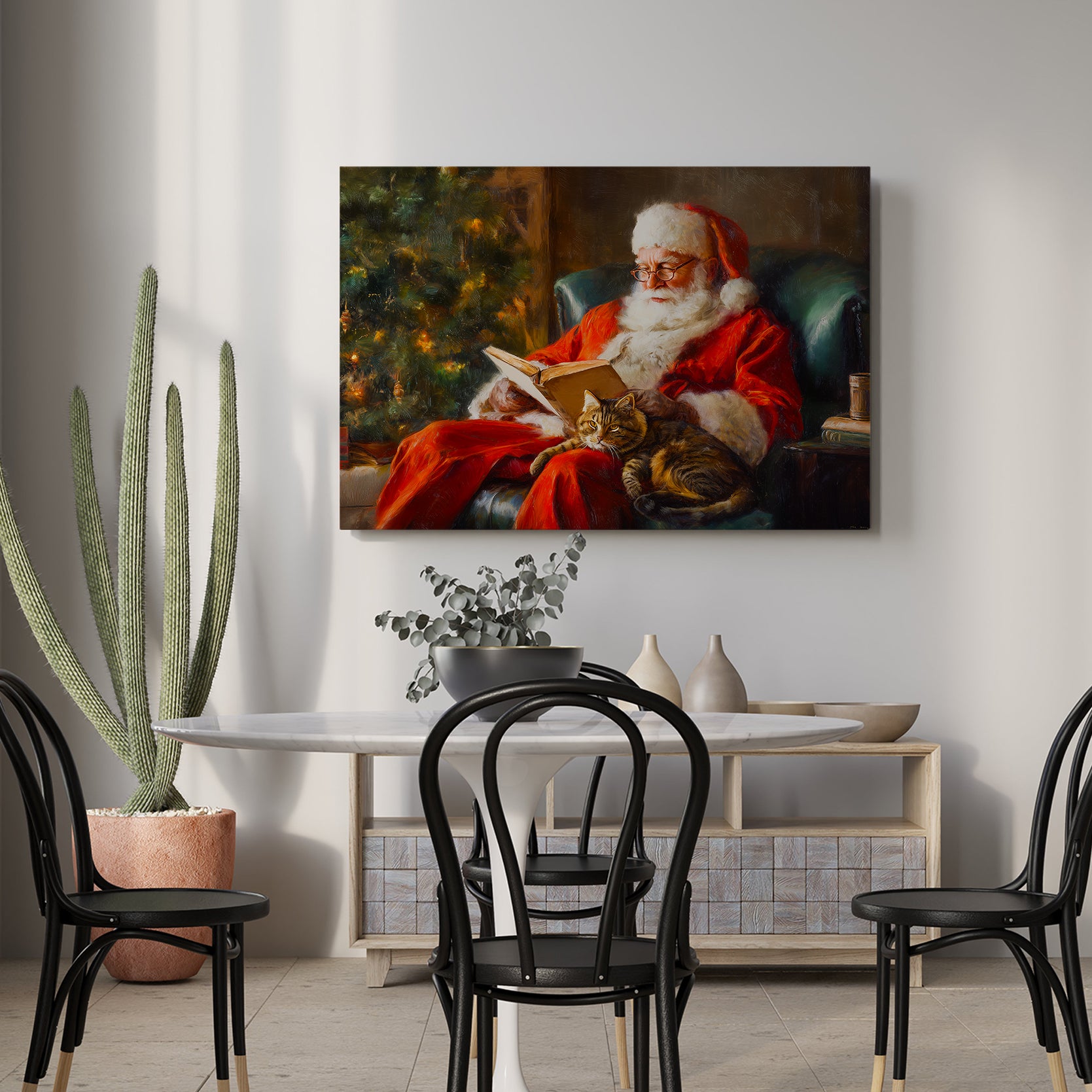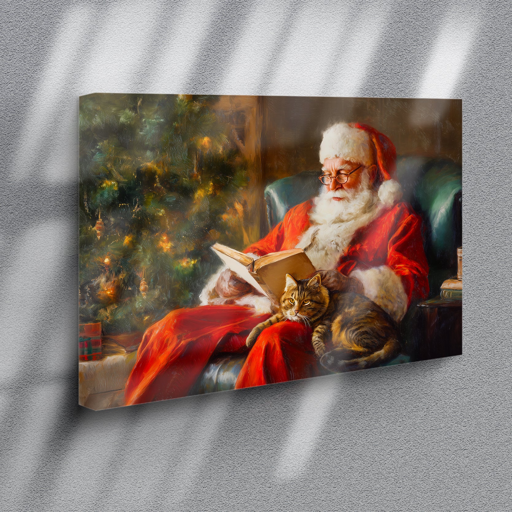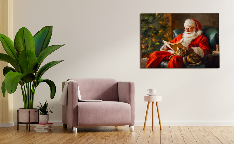 Bring festive warmth into your home with this charming canvas wall art featuring a traditional holiday scene. The composition captures a cozy moment with a cat nestled beside a decorated Christmas tree, evoking timeless seasonal charm. Perfect for creating a focal point above your sofa, anchoring a living room gallery wall, or adding character to bedroom spaces, this piece seamlessly complements classic and contemporary interiors alike. The canvas construction ensures durability and vibrant color retention, while the subject matter resonates with those who appreciate both holiday aesthetics and feline companionship. An ideal choice for transforming any room into a welcoming, festive sanctuary.