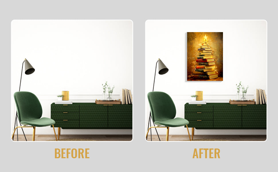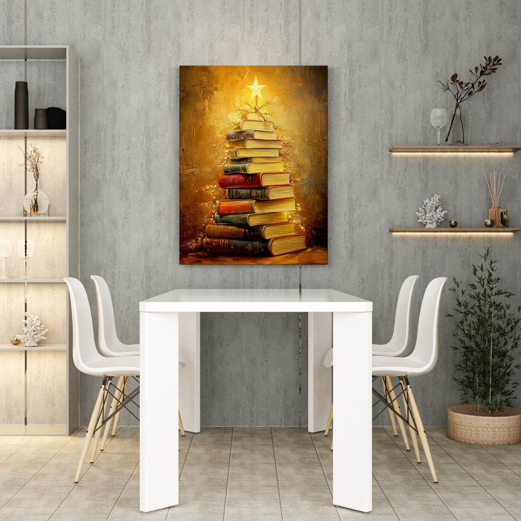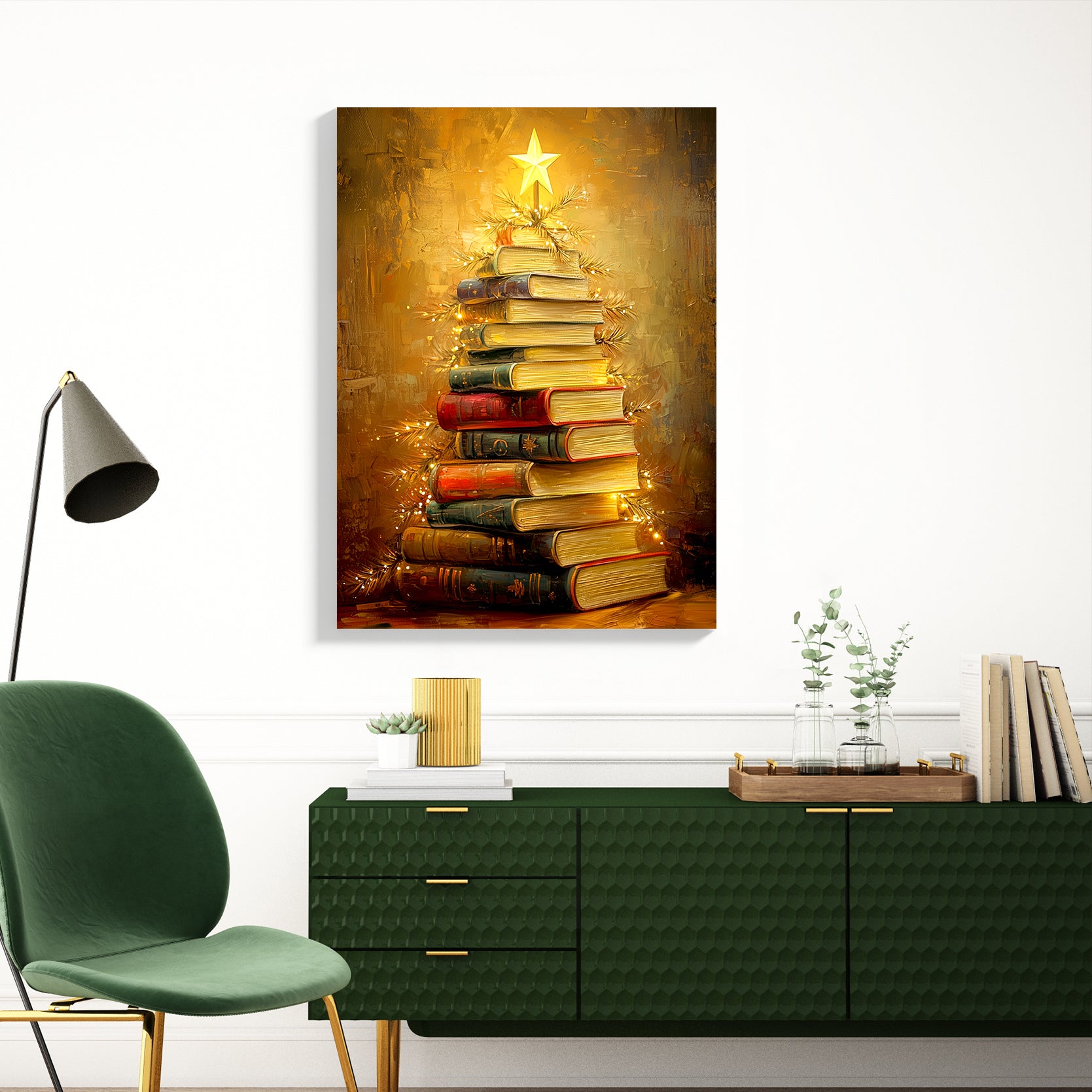 Transform your space with this distinctive canvas wall art featuring a creatively arranged Christmas tree composed entirely of stacked books. Perfect for literary enthusiasts and design-conscious homeowners, this piece merges festive charm with intellectual appeal. The warm, inviting composition works beautifully as a living room focal point, sofa backdrop, or bedroom accent. Crafted with attention to detail, this holiday decor celebrates the magic of reading while adding sophisticated seasonal style to any room. An ideal choice for those seeking meaningful, conversation-starting artwork that reflects both cultural appreciation and refined taste.