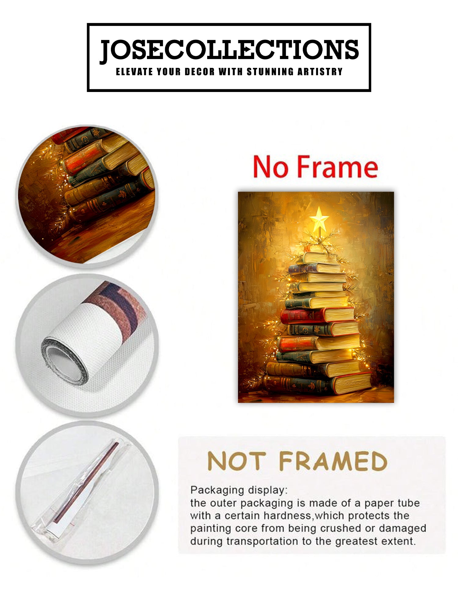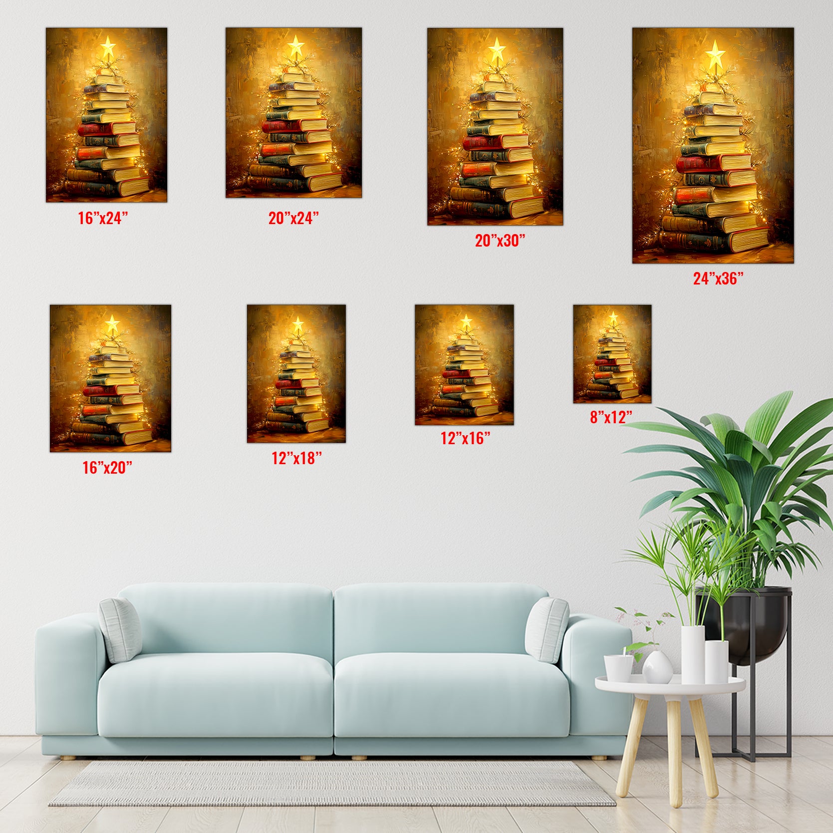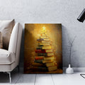 Christmas Book Tree Canvas Wall Art, Literary Holiday Decor - For Living Room, Sofa Backdrop, Bedside Decoration, Home Decor