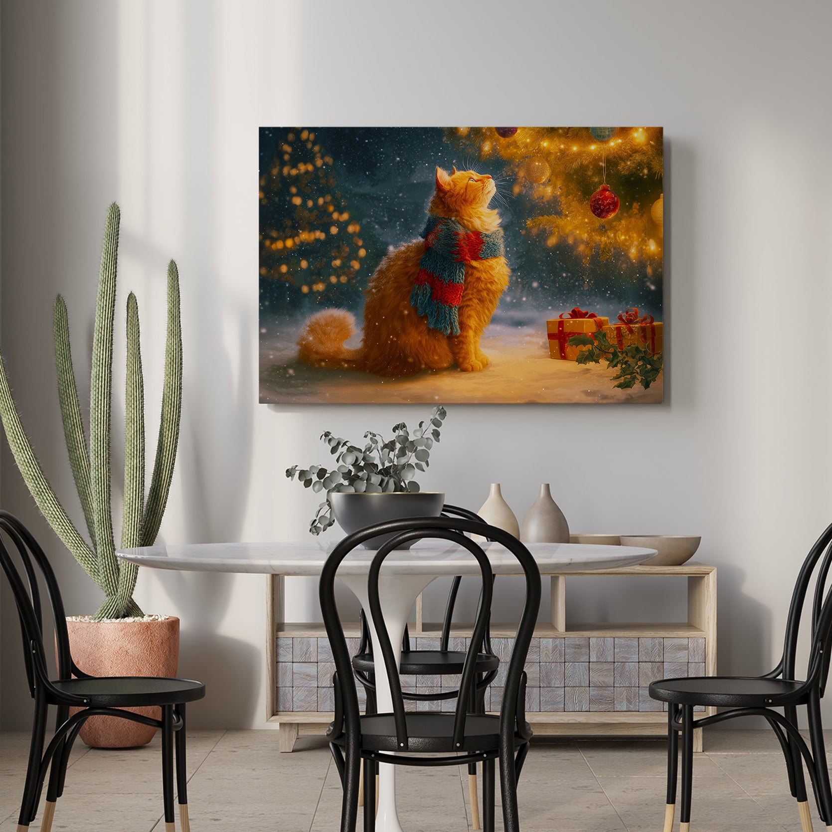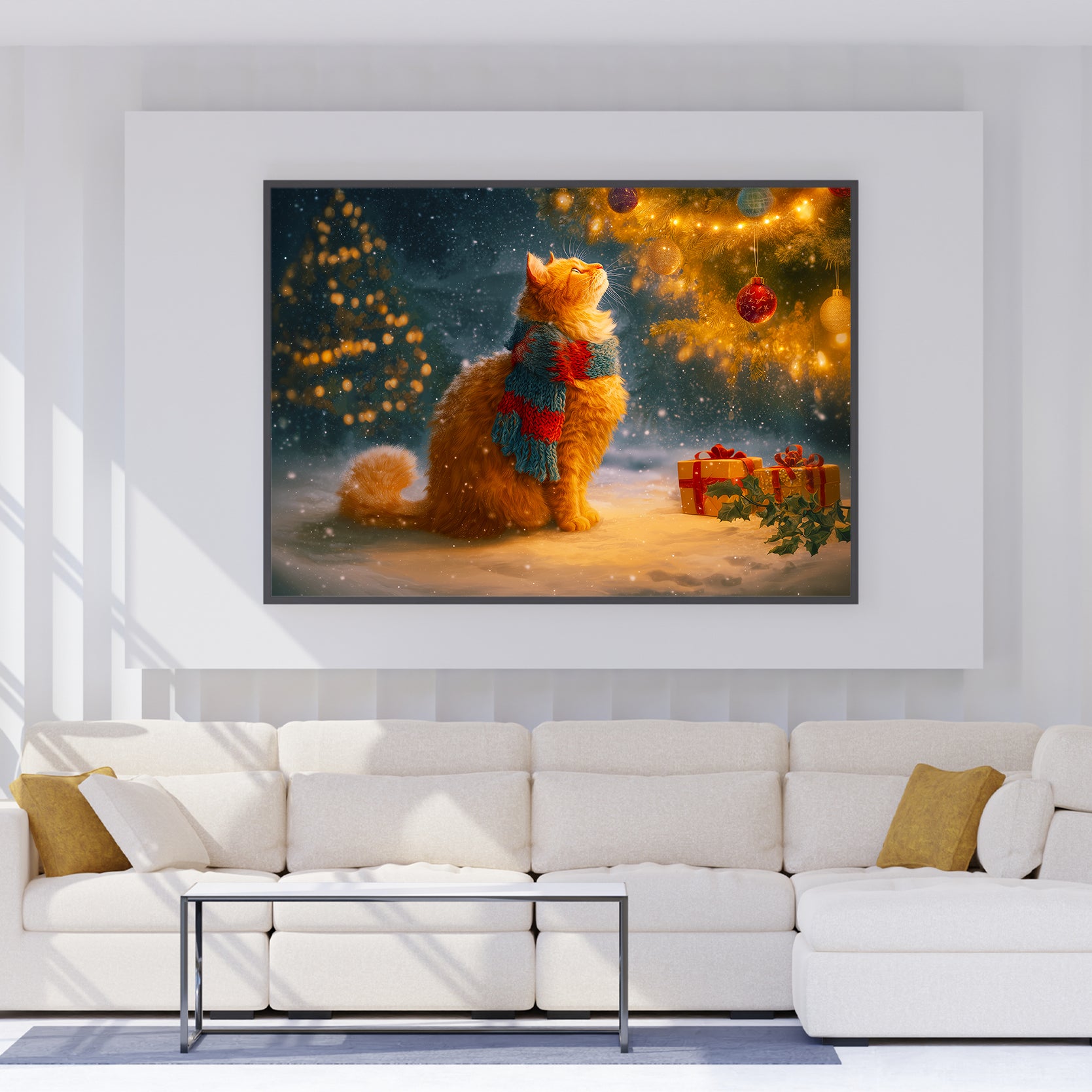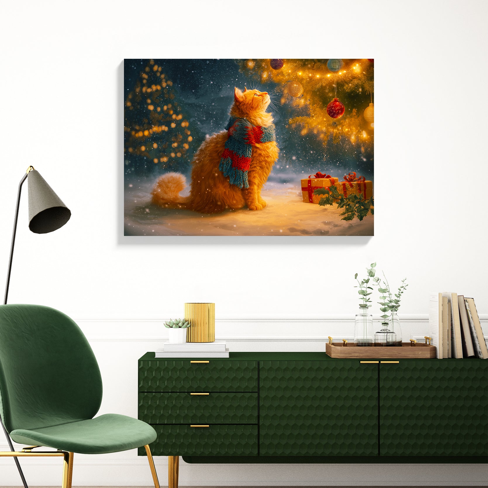 Bring festive warmth to any room with this charming Christmas Cat Canvas Wall Art. Featuring an adorable orange tabby cat nestled in a picturesque winter holiday scene, this piece captures the cozy spirit of the season. The carefully composed composition makes it an ideal focal point above your sofa, beside your bed, or in any living space seeking seasonal charm. High-quality canvas construction ensures lasting vibrancy and durability, while the timeless holiday imagery appeals to cat lovers and festive decorators alike. Perfect for creating an inviting atmosphere that celebrates both your love of felines and the magic of Christmas.