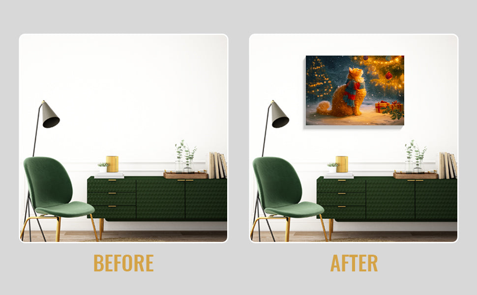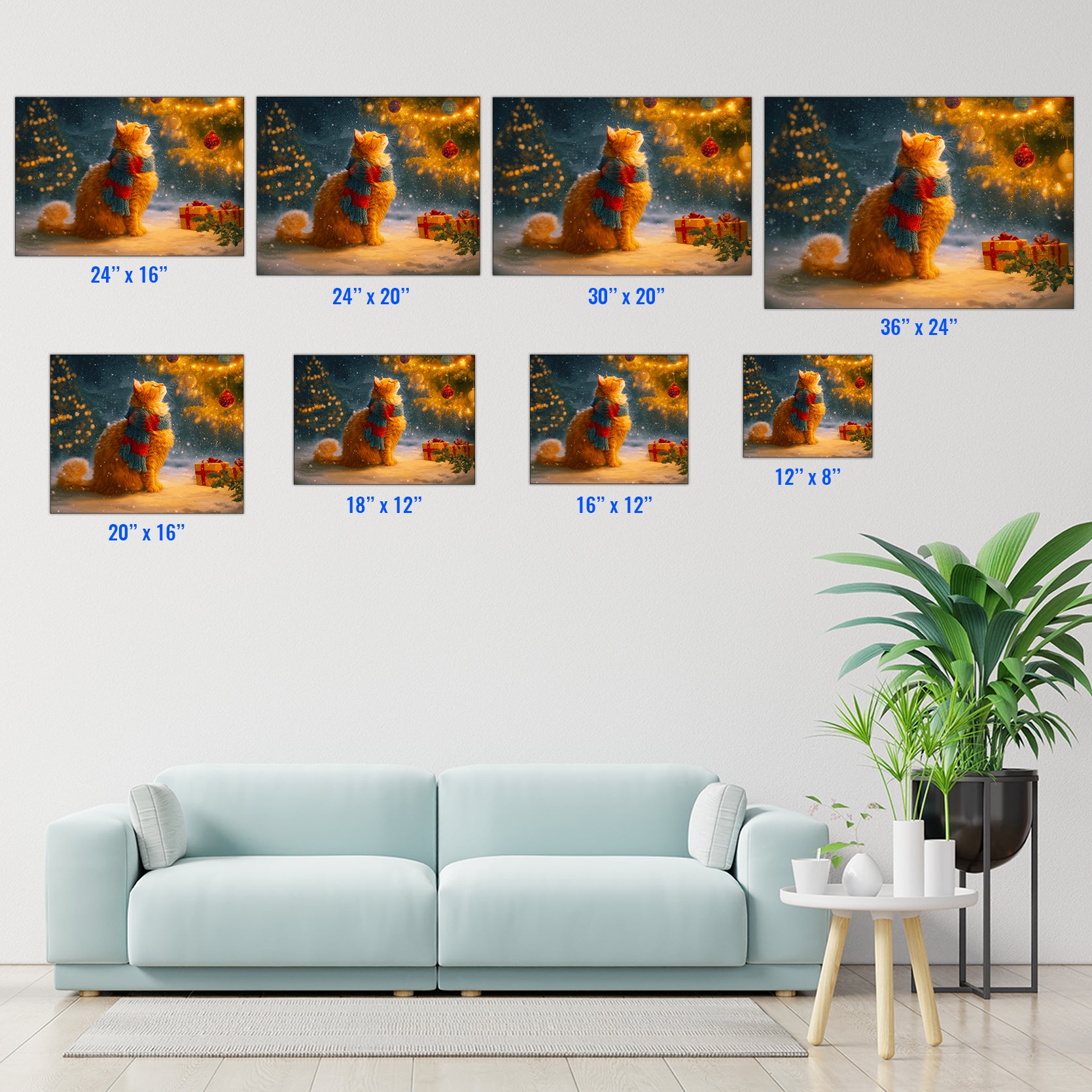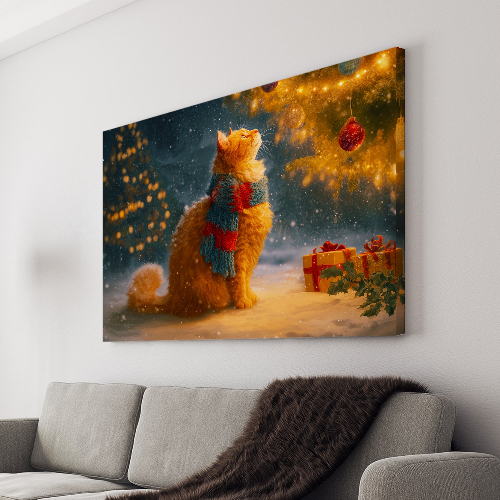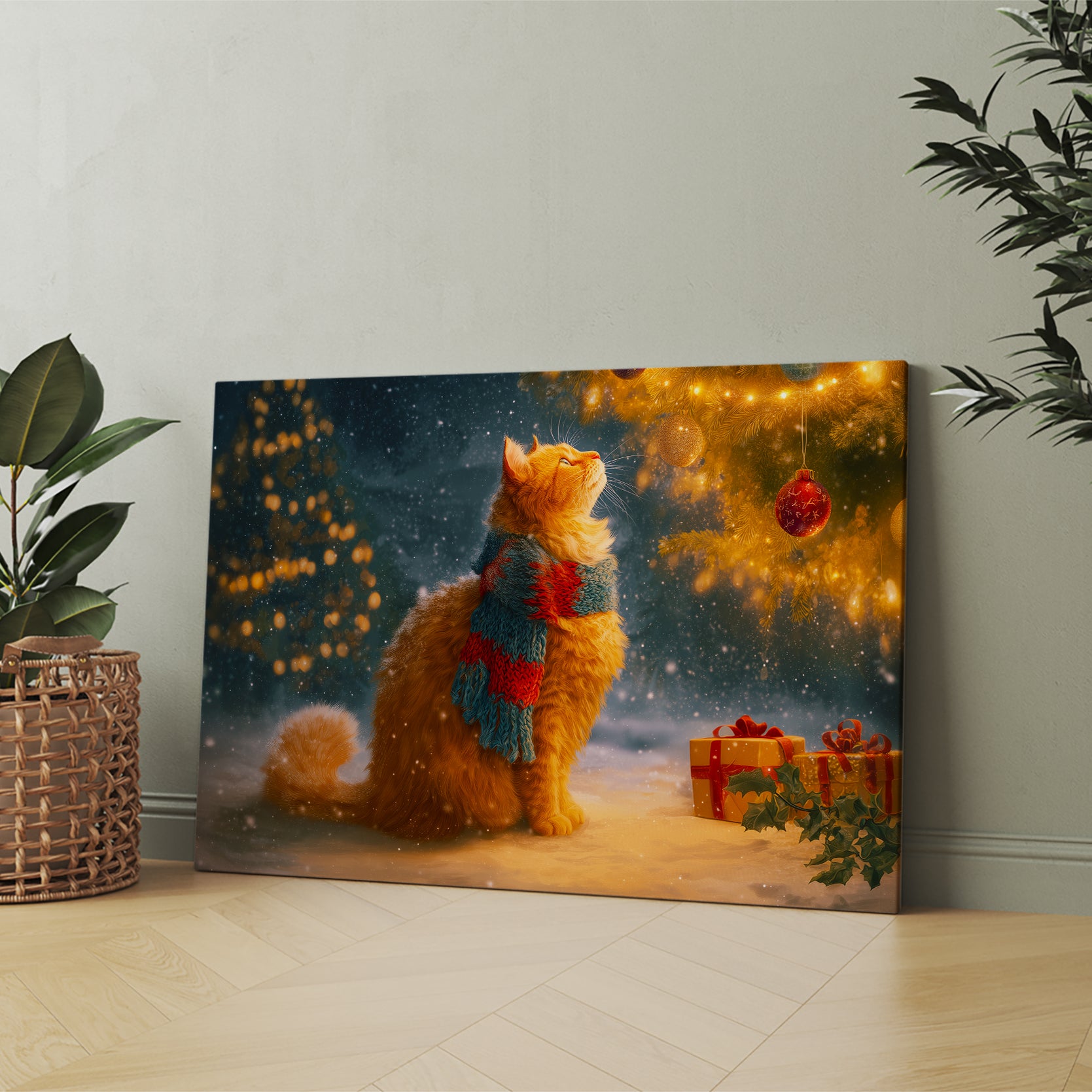 Bring festive warmth to any room with this charming Christmas Cat Canvas Wall Art. Featuring an adorable orange tabby cat nestled in a picturesque winter holiday scene, this piece captures the cozy spirit of the season. The carefully composed composition makes it an ideal focal point above your sofa, beside your bed, or in any living space seeking seasonal charm. High-quality canvas construction ensures lasting vibrancy and durability, while the timeless holiday imagery appeals to cat lovers and festive decorators alike. Perfect for creating an inviting atmosphere that celebrates both your love of felines and the magic of Christmas.
