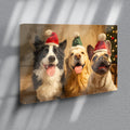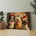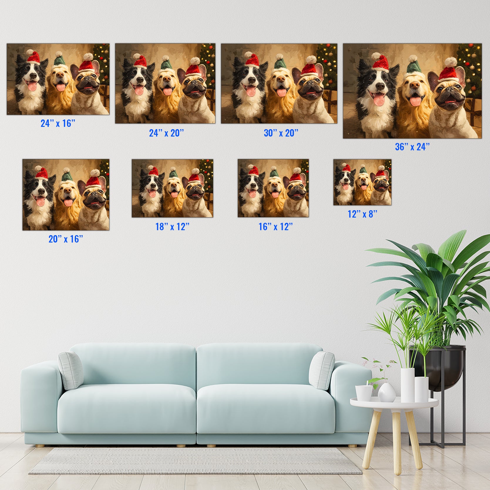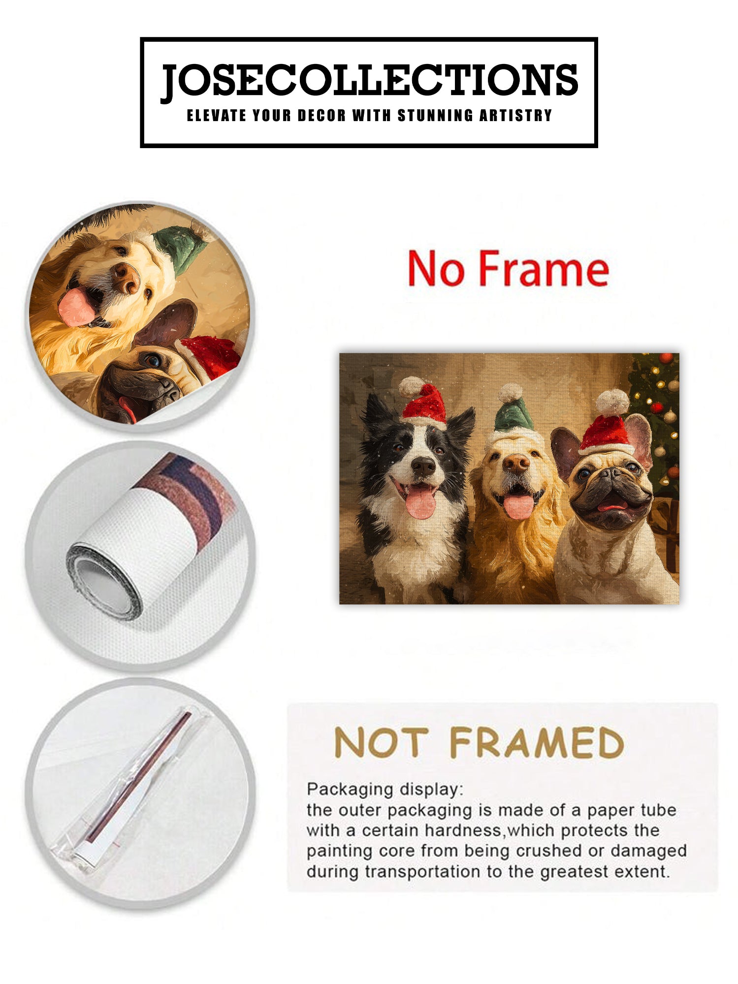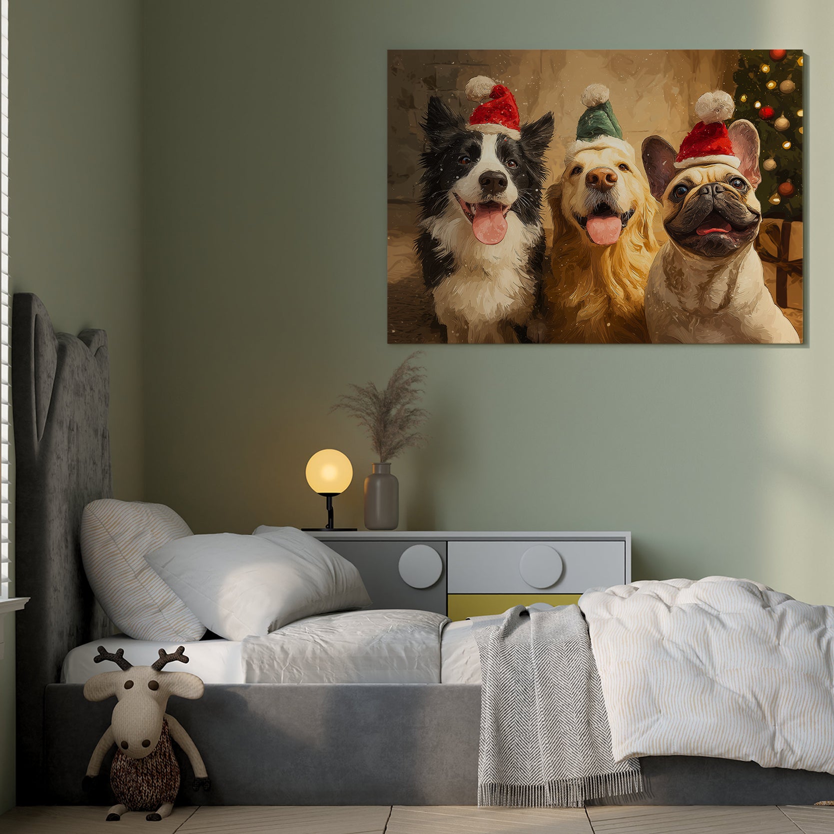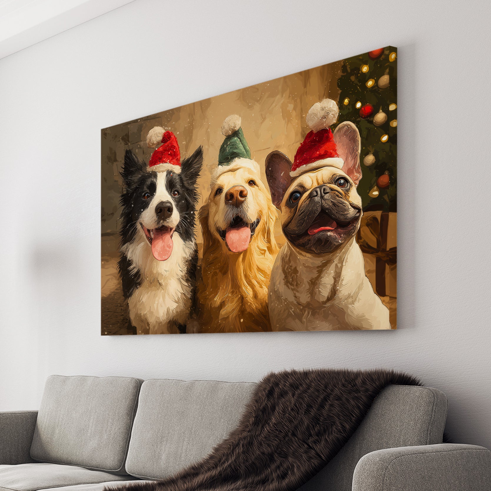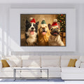 Christmas Holiday Dogs Canvas Wall Art, Festive Pet Portrait with Santa Hats - For Living Room, Sofa Backdrop, Bedside Decoration, Home Decor