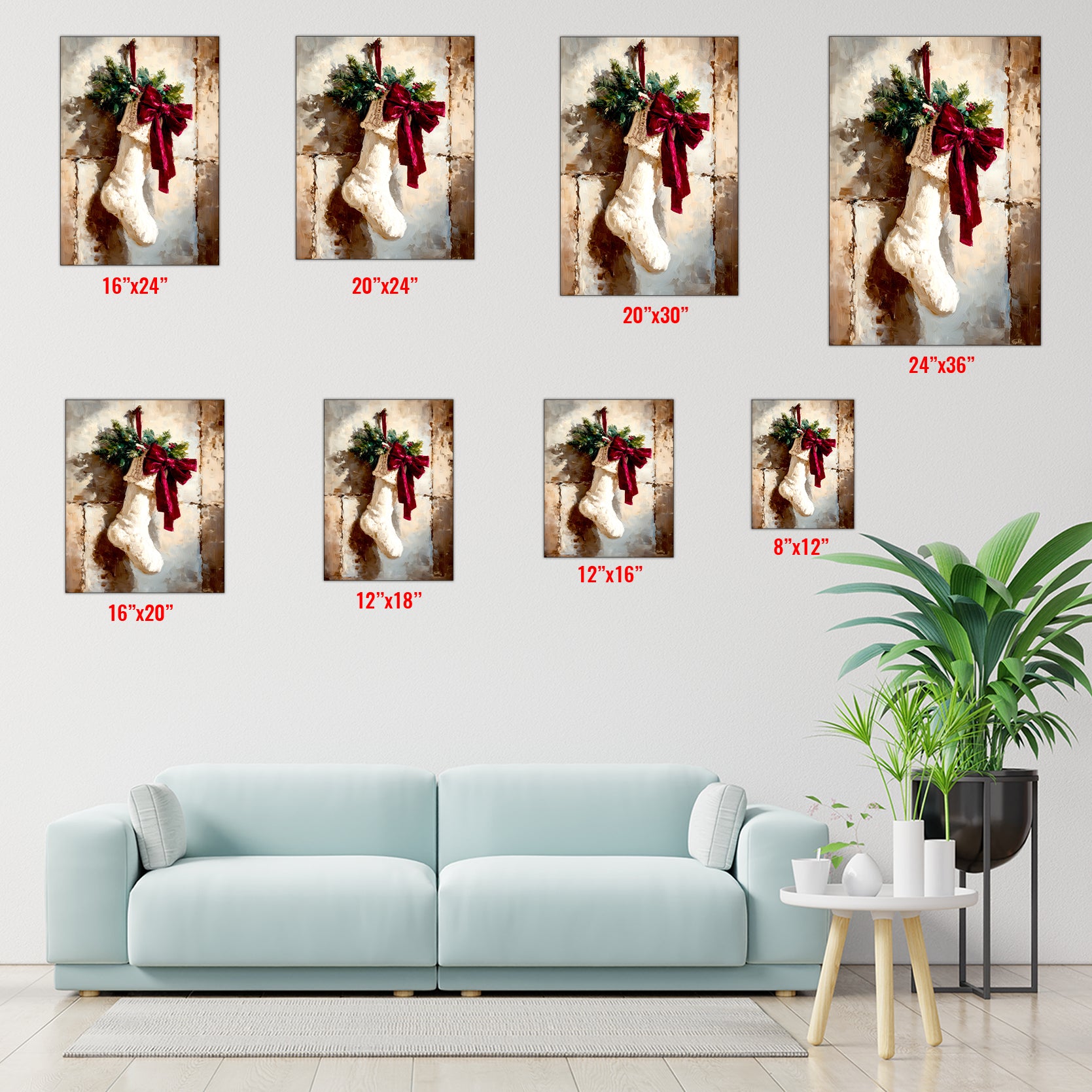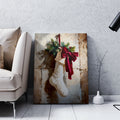 Christmas Holiday Stocking Art Canvas Print, Winter Decor with Red Bow and Greenery - For Living Room, Sofa Backdrop, Bedside Decoration, Home Decor