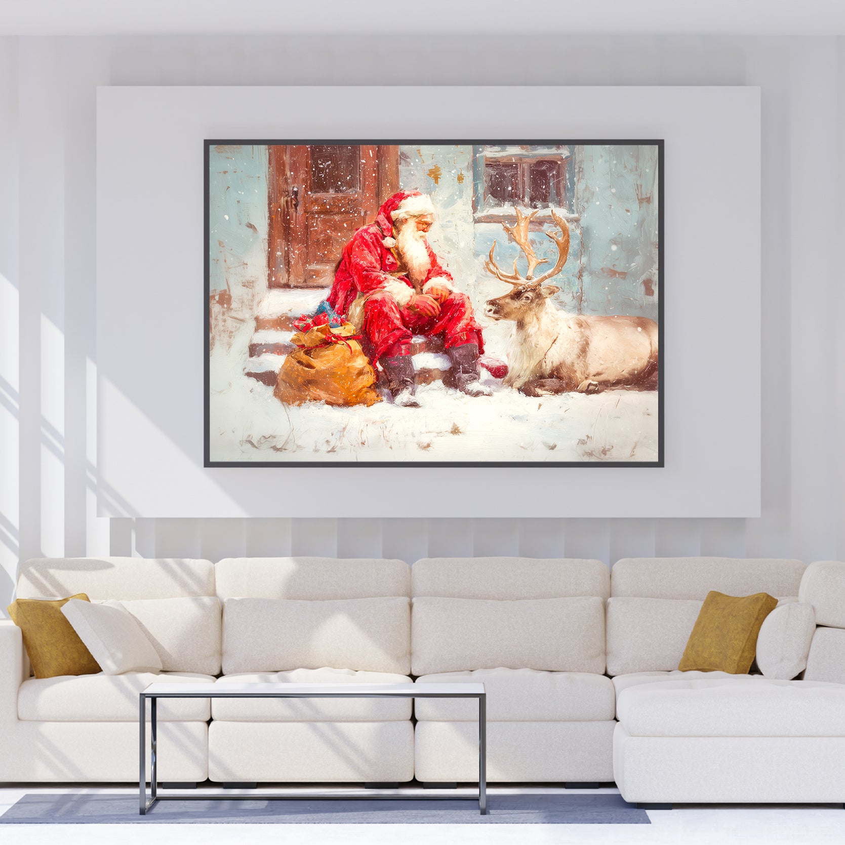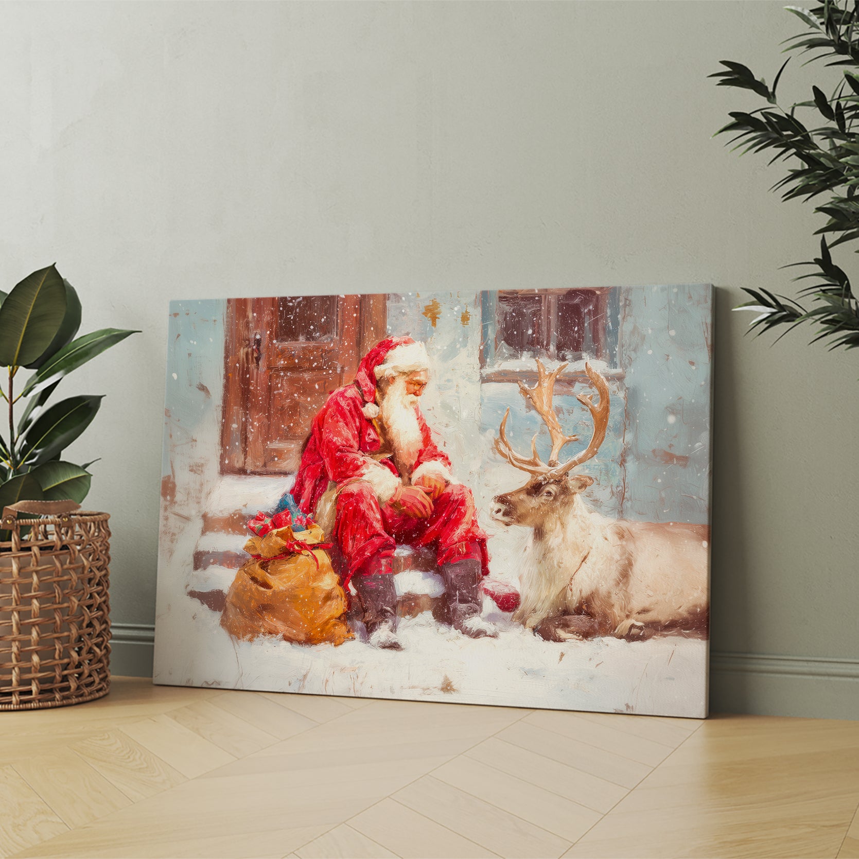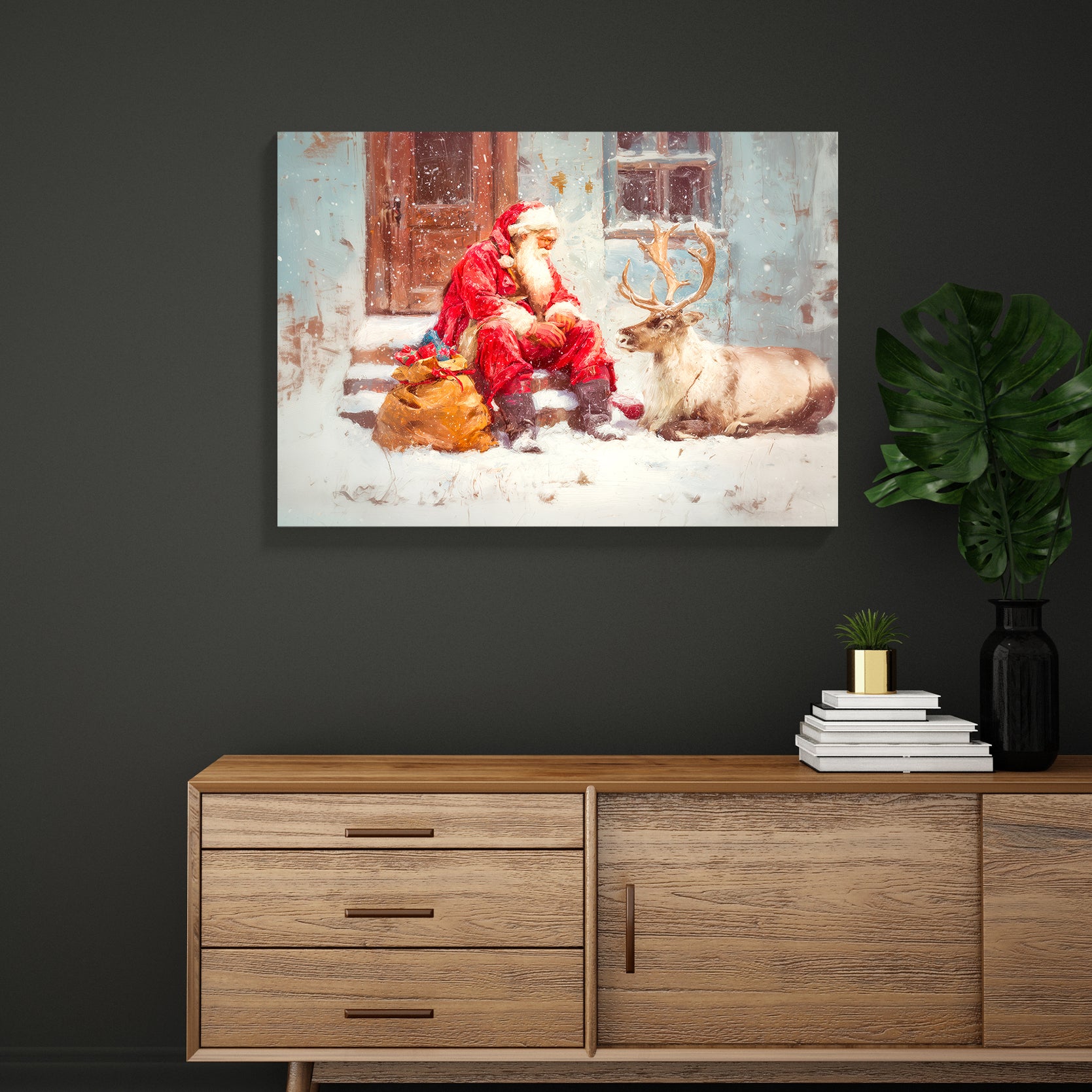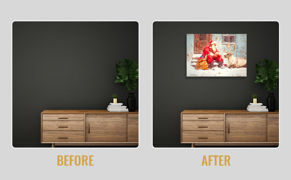 Transform your space into a winter wonderland with this captivating canvas wall art featuring a serene Christmas scene complete with majestic reindeer. Expertly crafted to capture the magic of the holiday season, this piece brings festive warmth to any room—whether displayed above your sofa, beside your bed, or as a focal point in your living area. The rich, detailed imagery creates an inviting atmosphere that resonates with both traditional and contemporary décor styles. Perfect for those seeking to elevate their home's seasonal aesthetic without overwhelming the space, this canvas combines artistic quality with versatile placement options. An ideal choice for holiday enthusiasts who appreciate thoughtfully designed décor that celebrates the beauty of winter.