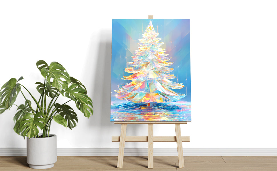 Crystal Christmas Tree Canvas Wall Art, Prismatic Glass Design Print - For Living Room, Sofa Backdrop, Bedside Decoration, Home Decor