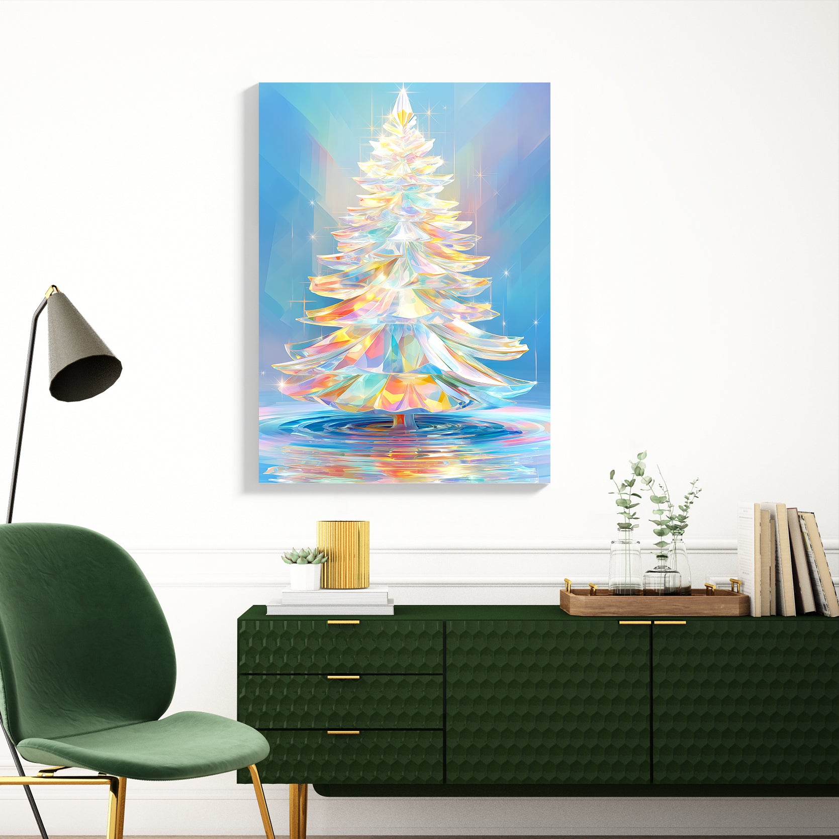 Elevate your seasonal décor with this stunning crystal Christmas tree canvas wall art featuring a prismatic glass design. The intricate print captures the luminous beauty of crystalline forms, creating a sophisticated focal point that transcends holiday decorating. Ideal for living rooms, above sofas, or as an elegant bedside accent, this piece combines festive charm with contemporary artistry. The prismatic glass aesthetic adds depth and visual interest, reflecting light beautifully throughout your space. Perfect for those seeking refined home décor that celebrates the season with understated elegance and timeless appeal.