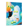 Cute Black Cat and Ghost Art Print, Halloween Spa Day Theme - For Living Room, Sofa Backdrop, Bedside Decoration, Home Decor