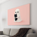 Cute Ghost and Black Cat Wall Art, Pink Background Canvas Print - For Living Room, Sofa Backdrop, Bedside Decoration, Home Decor