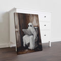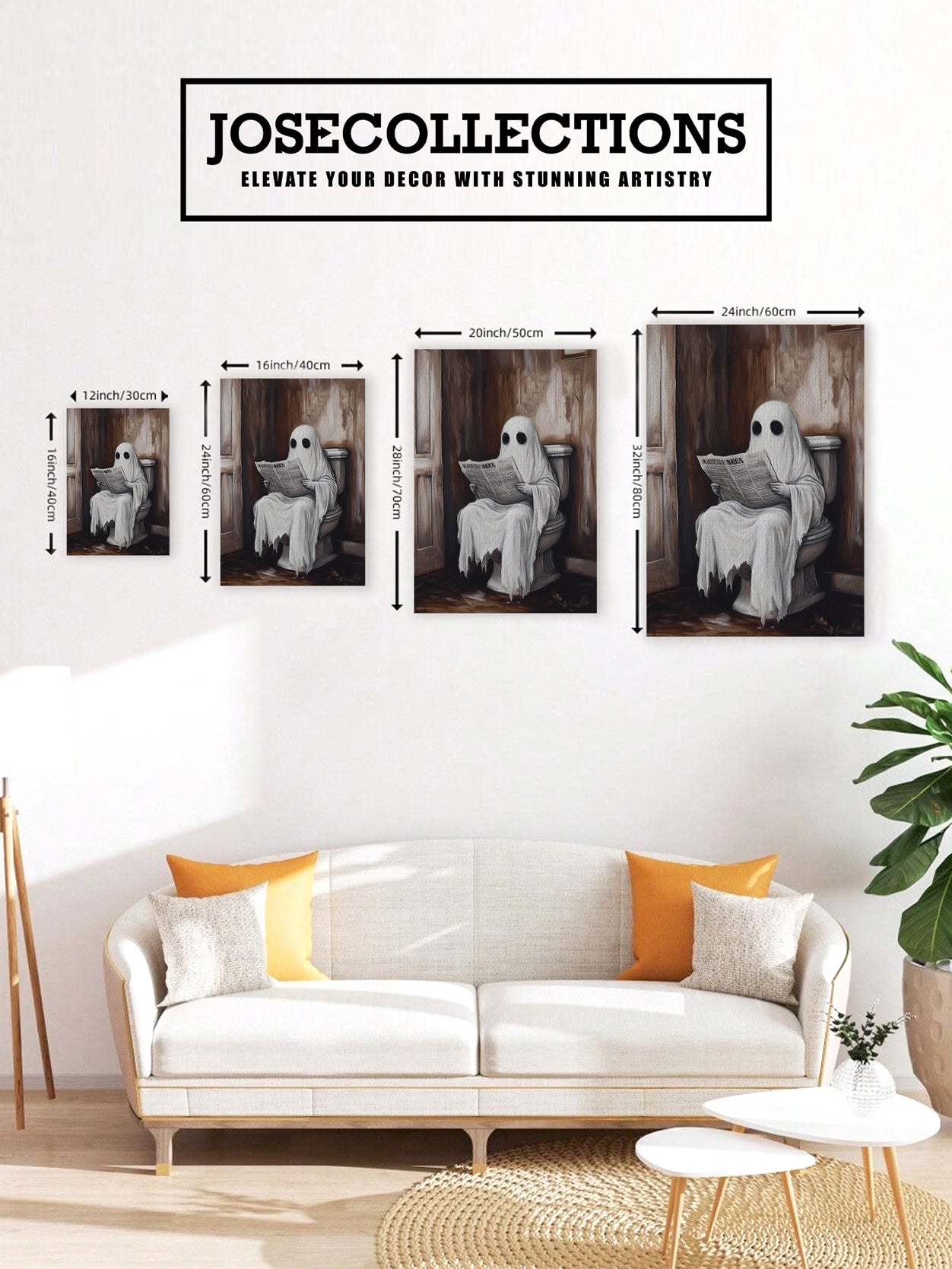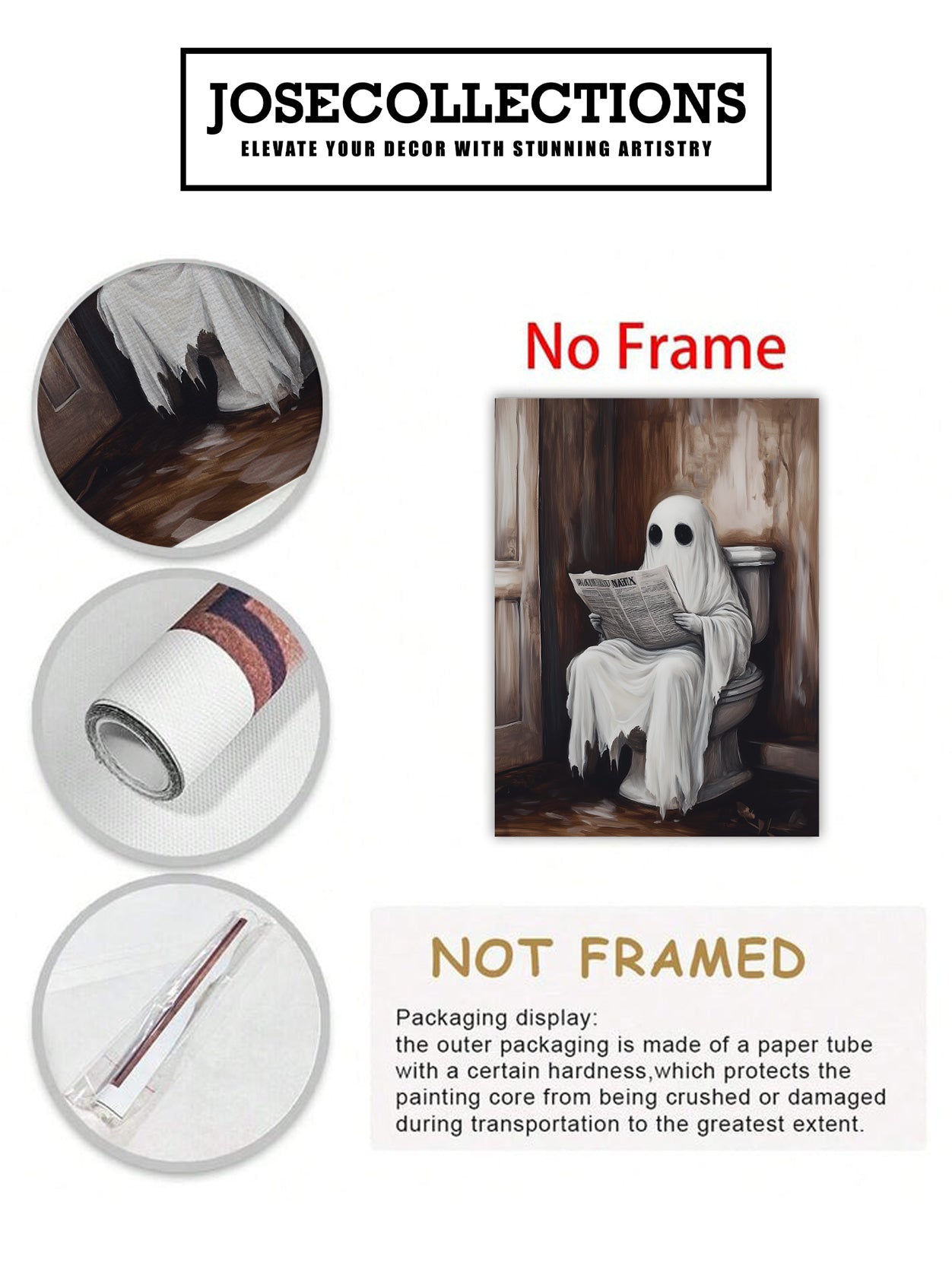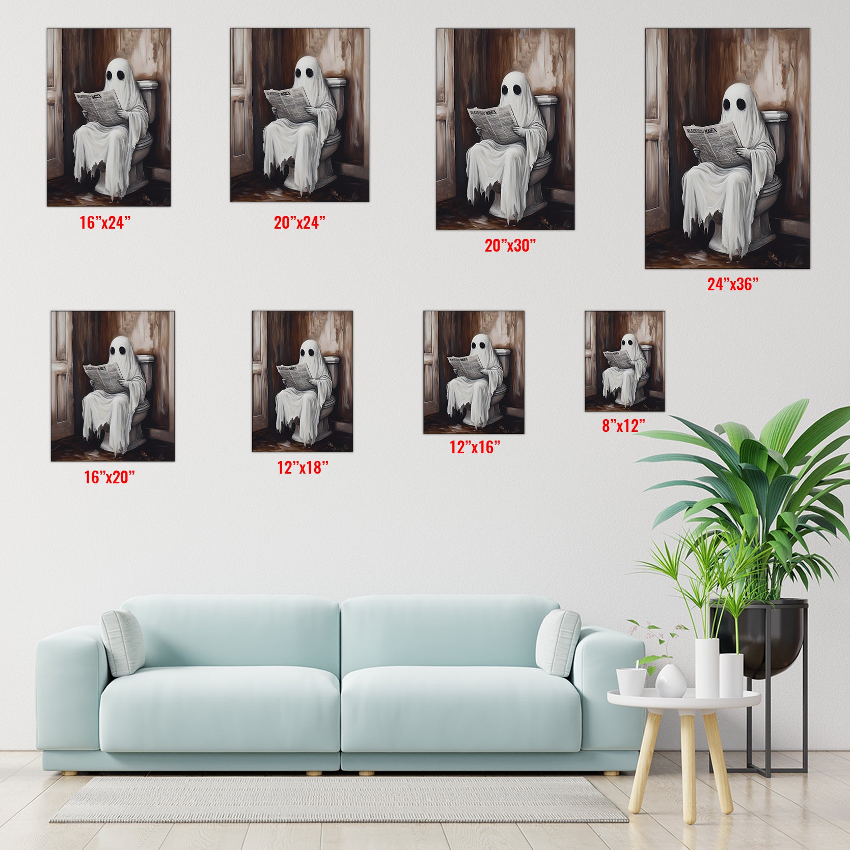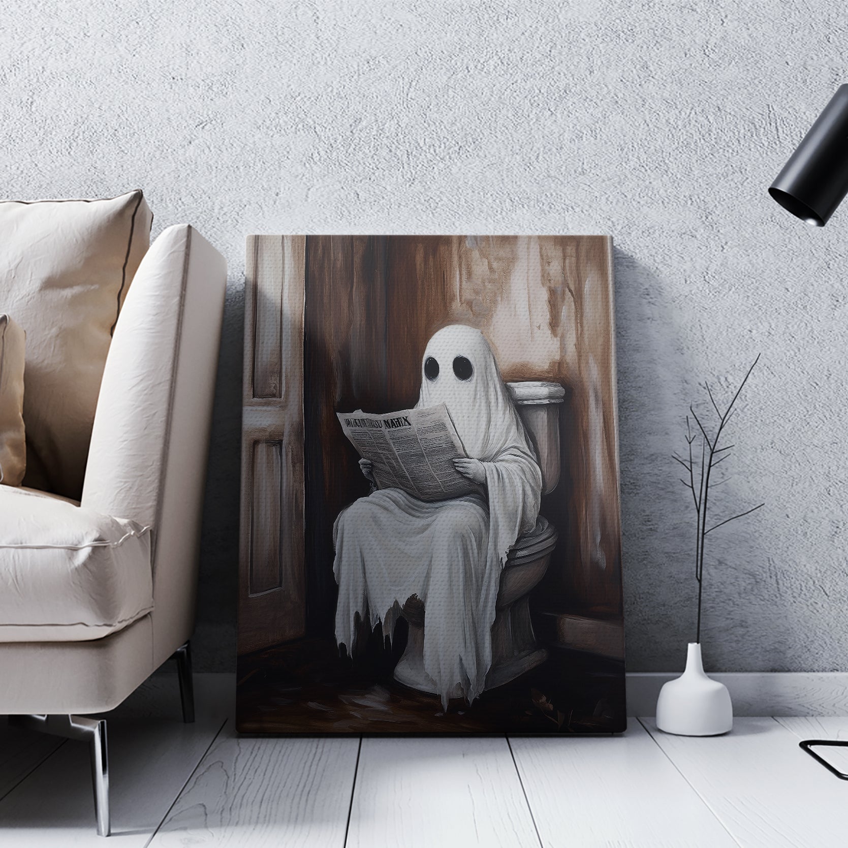 Funny Ghost Reading Newspaper Canvas Wall Art, Bathroom Humor Print - For Living Room, Sofa Backdrop, Bedside Decoration, Home Decor