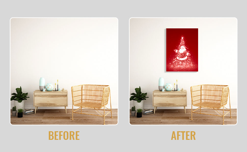 Transform your space with this stunning Glitter Santa Claus and Tree Canvas Wall Art, designed to bring festive elegance to any room. Featuring shimmering glitter accents that catch the light beautifully, this piece combines traditional holiday charm with modern aesthetic appeal. Perfect for living rooms, above sofas, or beside bedroom furniture, it creates an inviting focal point that celebrates the season year-round. The high-quality canvas construction ensures durability and vibrant color retention, while the expertly rendered Santa and tree design adds warmth and character to your home decor. An ideal choice for those seeking to elevate their interior with sophisticated holiday-inspired artwork.