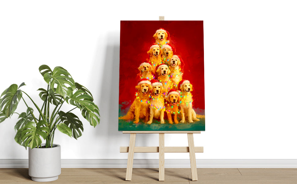 Golden Retriever Dog Christmas Tree Canvas Wall Art - For Living Room, Sofa Backdrop, Bedside Decoration, Home Decor