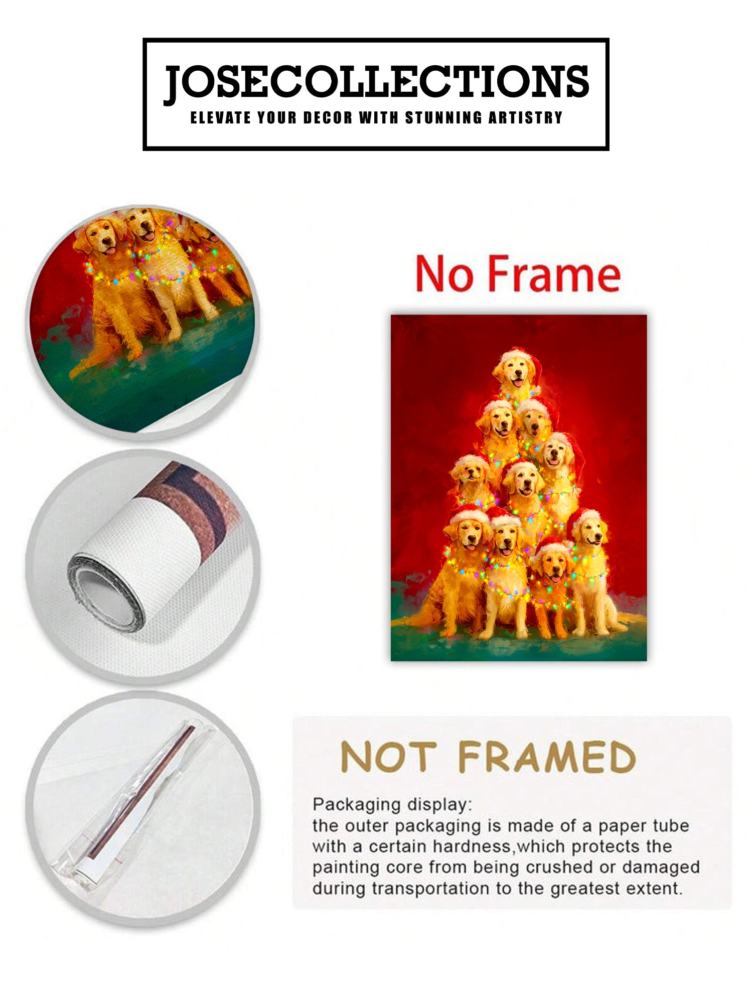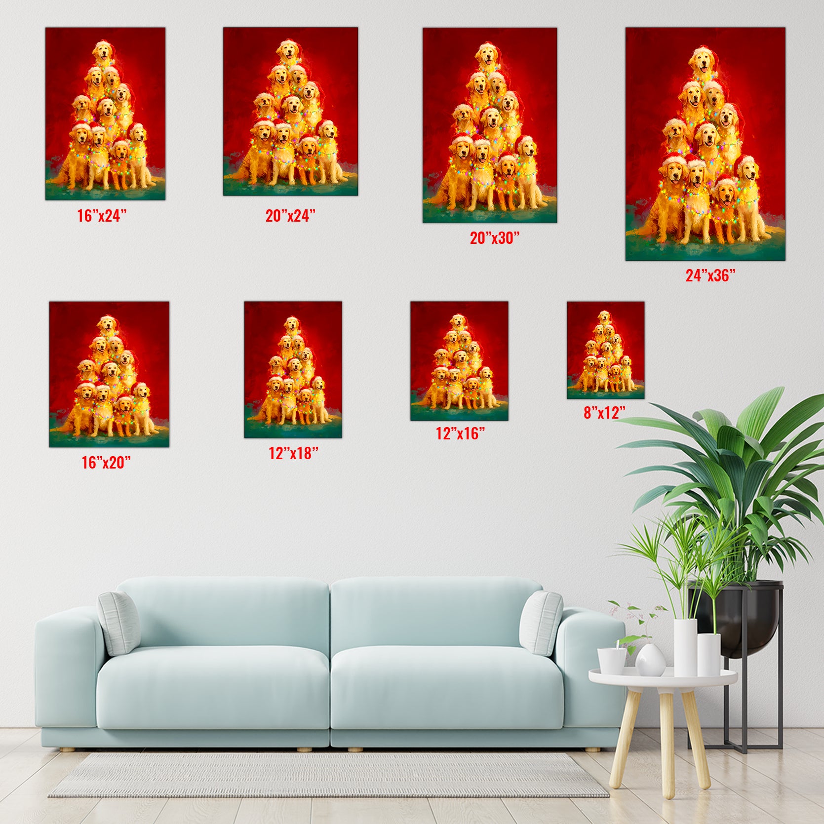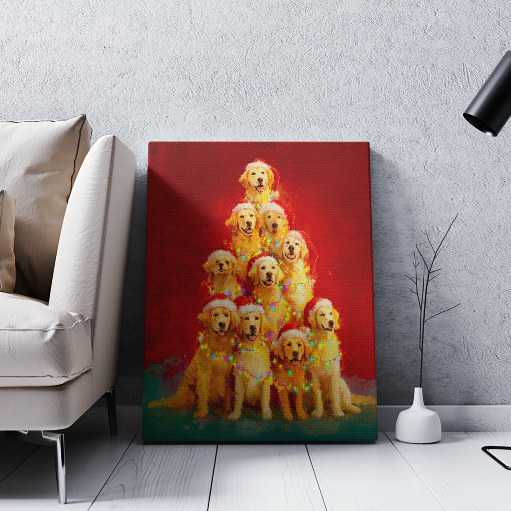 Bring festive warmth to any room with this charming Golden Retriever Christmas Tree canvas wall art. Featuring a beloved golden retriever adorned with holiday cheer, this piece combines seasonal spirit with timeless pet portraiture. The high-quality canvas construction ensures vibrant colors and lasting durability, making it an ideal focal point for living rooms, bedrooms, or above sofas. Perfect for dog lovers and holiday enthusiasts alike, this artwork adds personality and comfort to your home while celebrating the joy of the season. Transform your space into a cozy, inviting sanctuary with this delightful decorative accent.