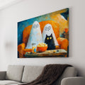 Halloween Ghost and Black Cat Canvas Wall Art, Whimsical Movie Night Painting - For Living Room, Sofa Backdrop, Bedside Decoration, Home Decor
