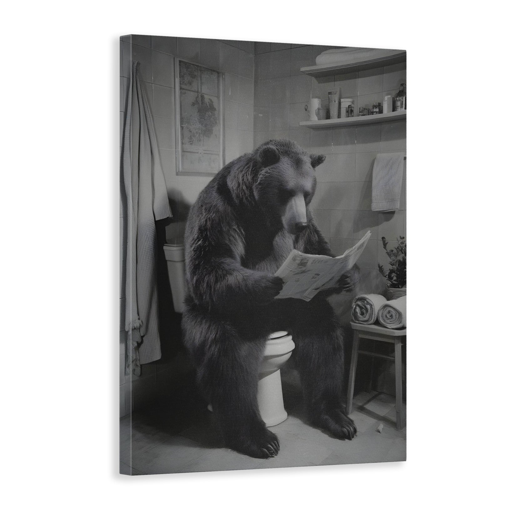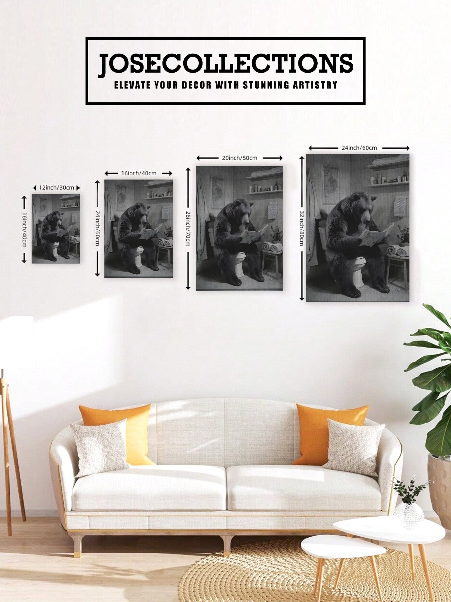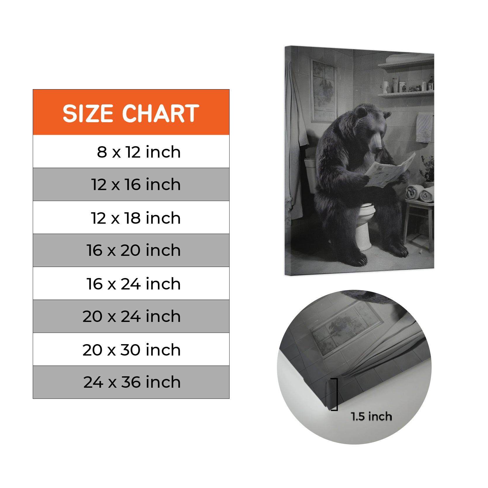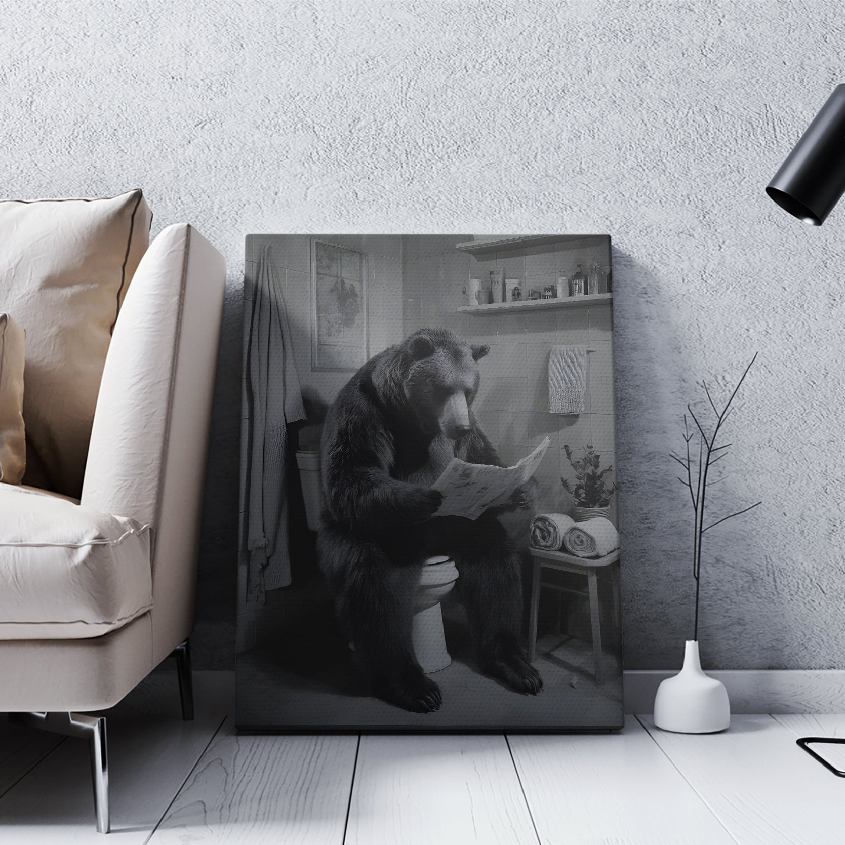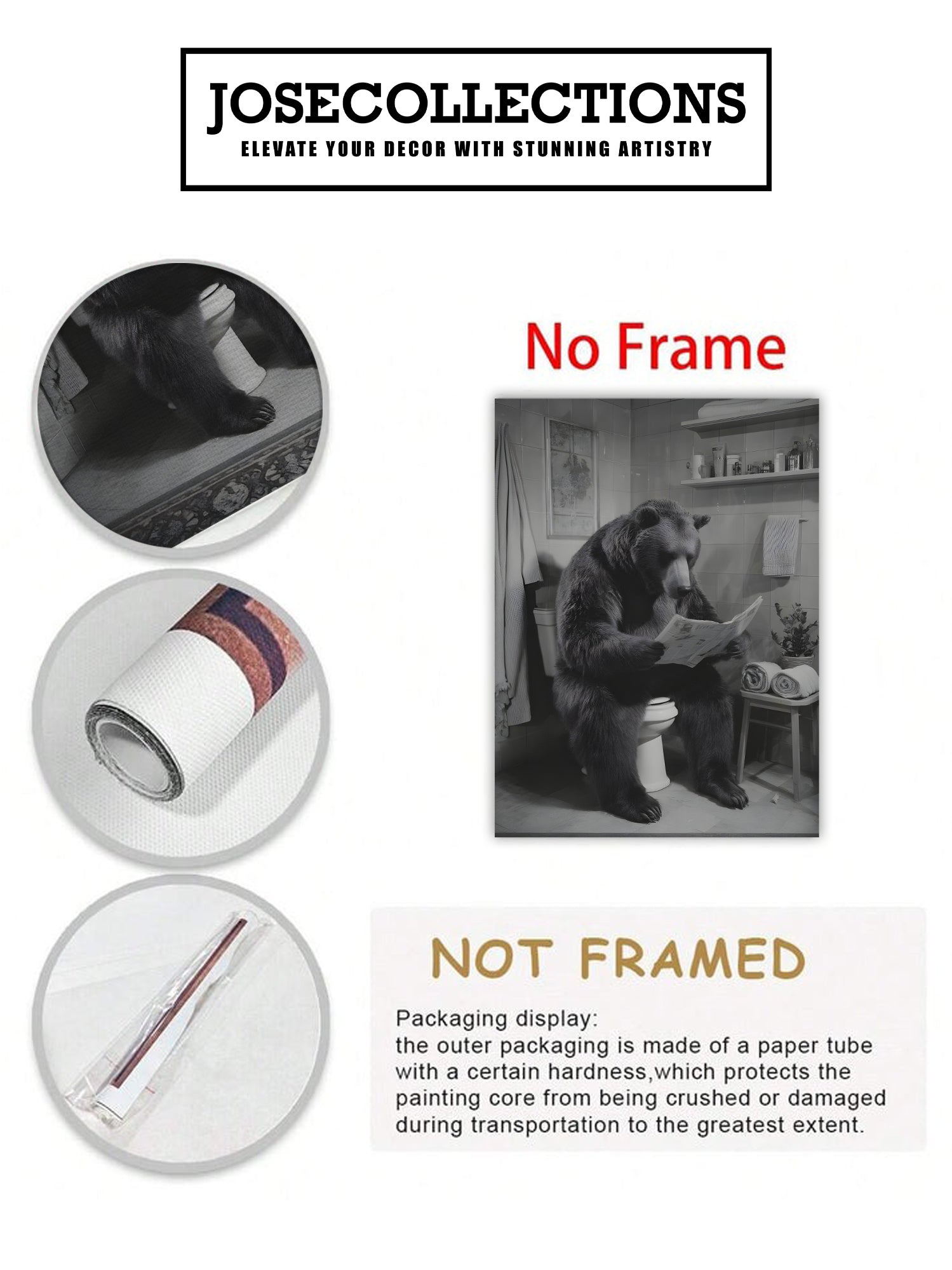 Humorous Black Bear in Bathroom Canvas Wall Art, Black and White Photography Print - For Living Room, Sofa Backdrop, Bedside Decoration, Home Decor