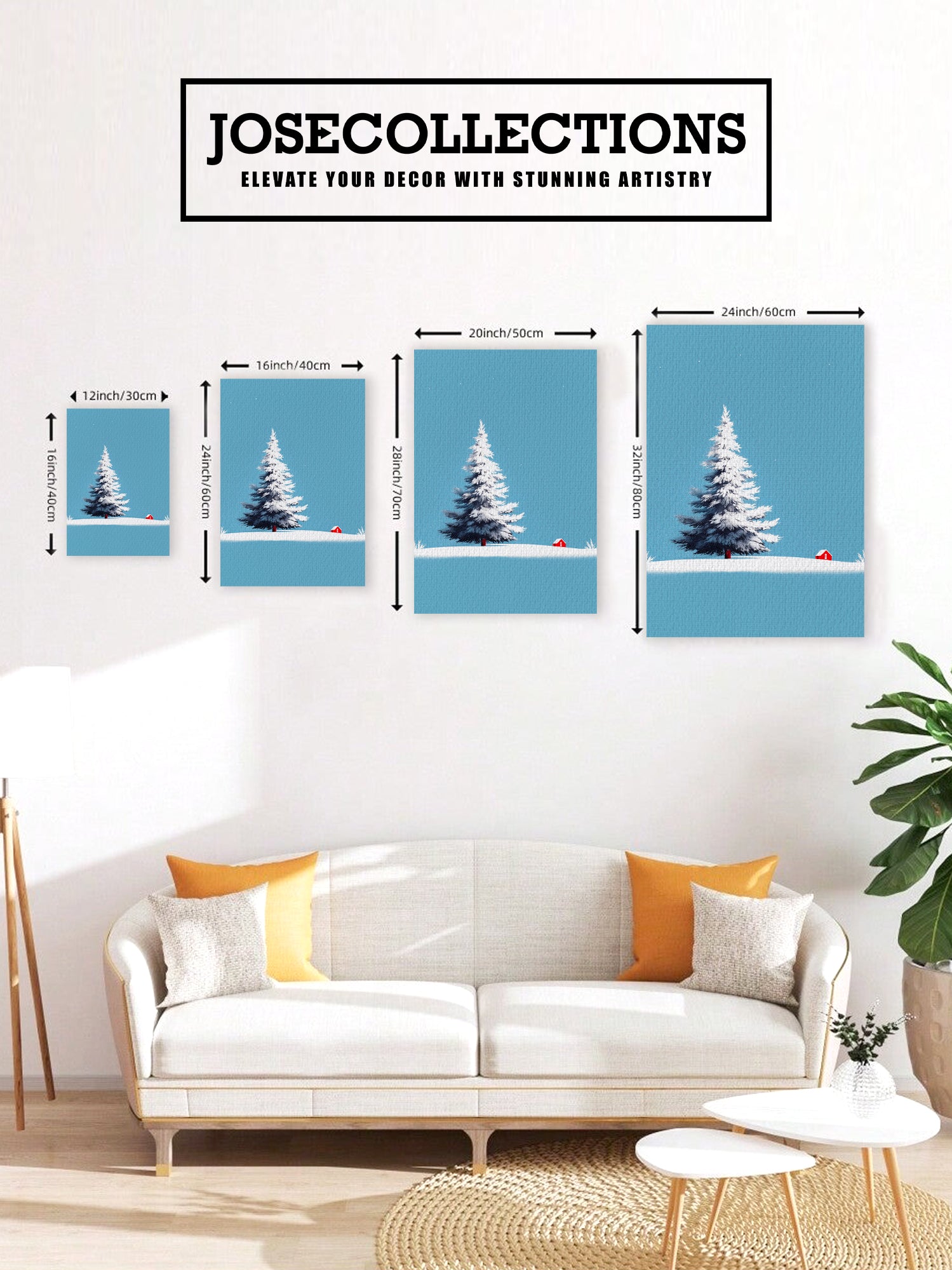 Minimalist Winter Tree Canvas Wall Art, Snow Covered Pine Landscape Painting - For Living Room, Sofa Backdrop, Bedside Decoration, Home Decor