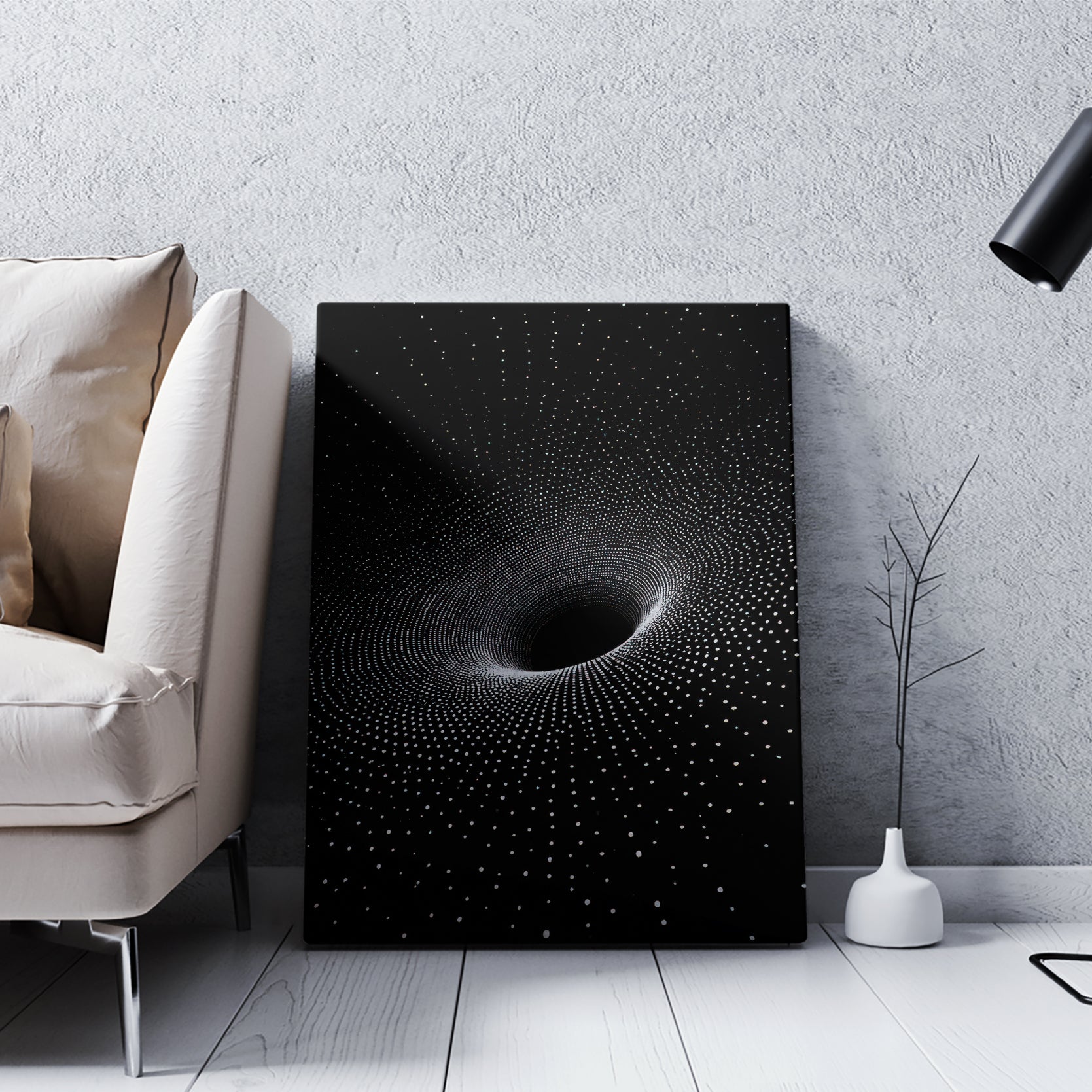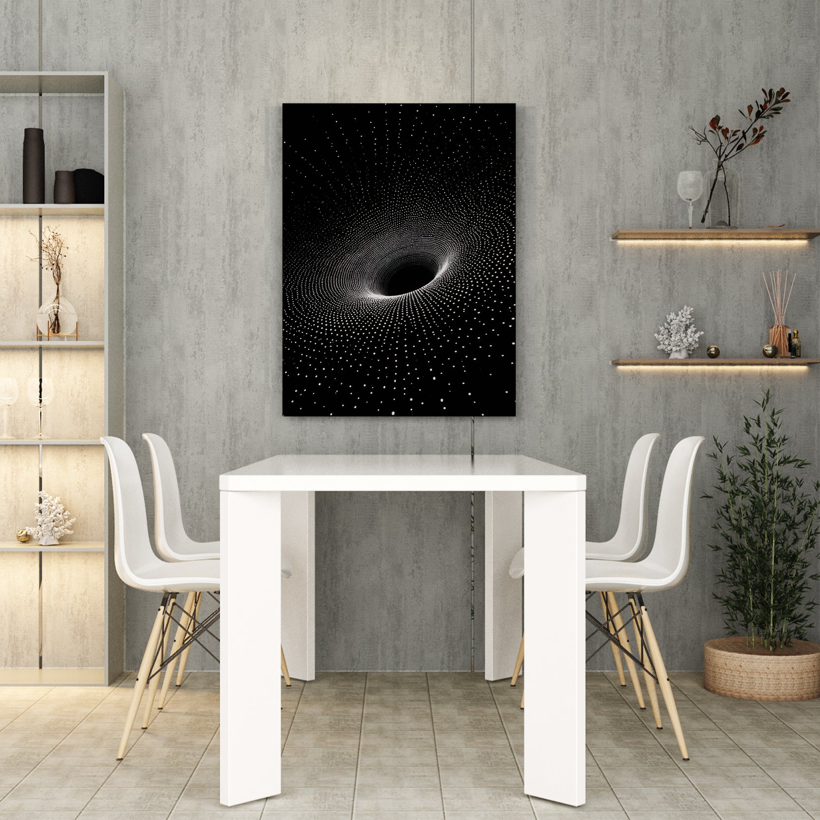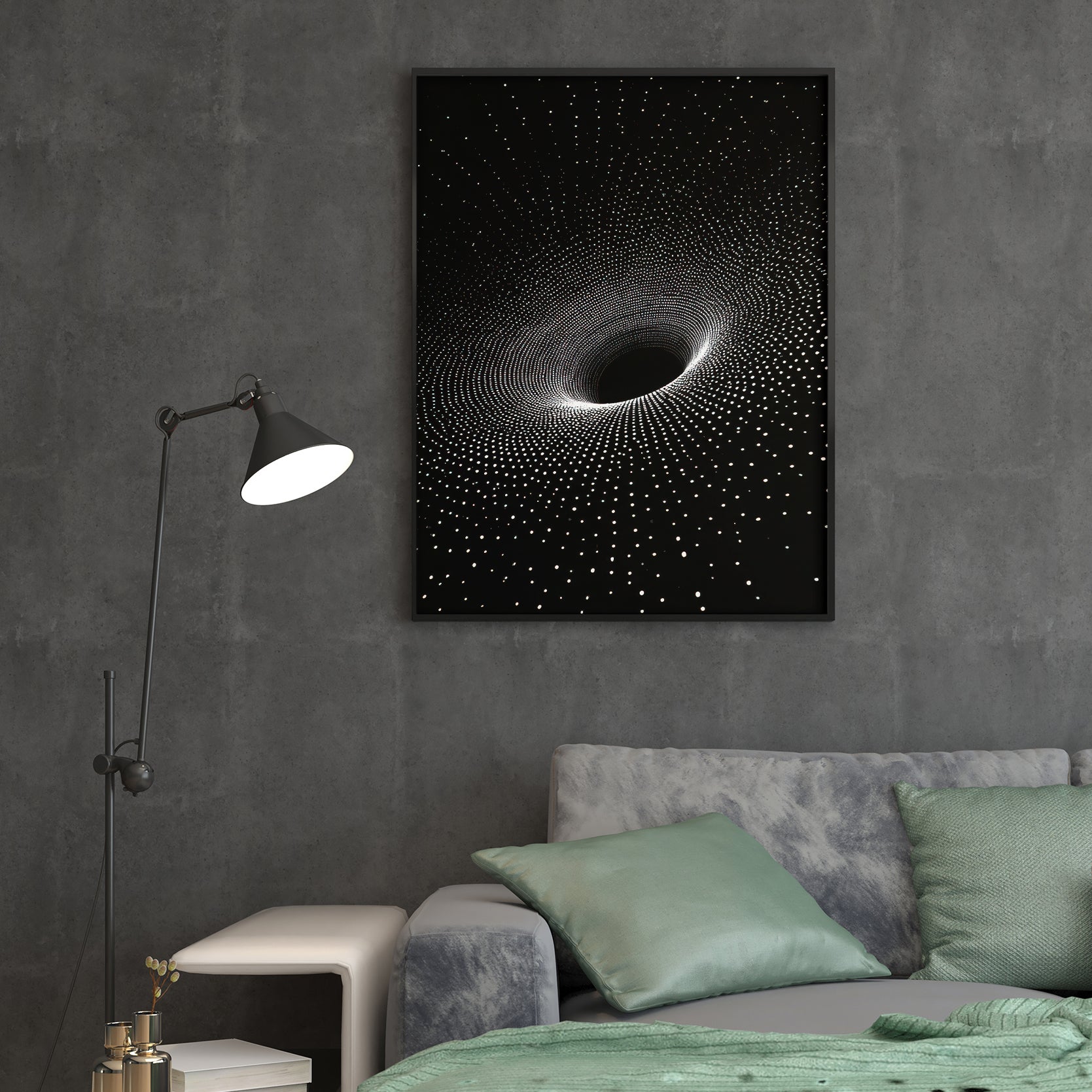Transform your space with this striking cosmic vortex canvas art. Featuring a mesmerizing black and white spiral design, this abstract piece captures the essence of infinite space and modern sophistication. The high-contrast composition creates visual depth that commands attention without overwhelming your décor. Perfect for living rooms, bedrooms, or above sofas, this versatile artwork complements contemporary and minimalist interiors alike. The durable canvas construction ensures lasting quality, while the timeless monochromatic palette pairs seamlessly with any color scheme. Elevate your home with an artistic statement that sparks conversation and imagination.