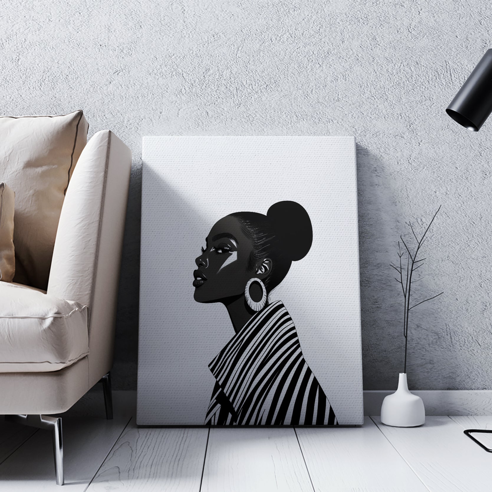 Elevate your living space with this Modern Black and White Fashion Portrait Canvas Wall Art. Designed to complement contemporary interiors, it serves as a striking focal point above sofas or bedside areas. The monochrome palette enhances any decor style, adding sophistication and visual interest without overwhelming the room. Crafted for durability and easy installation, this canvas art transforms your home with timeless elegance and refined aesthetic appeal.