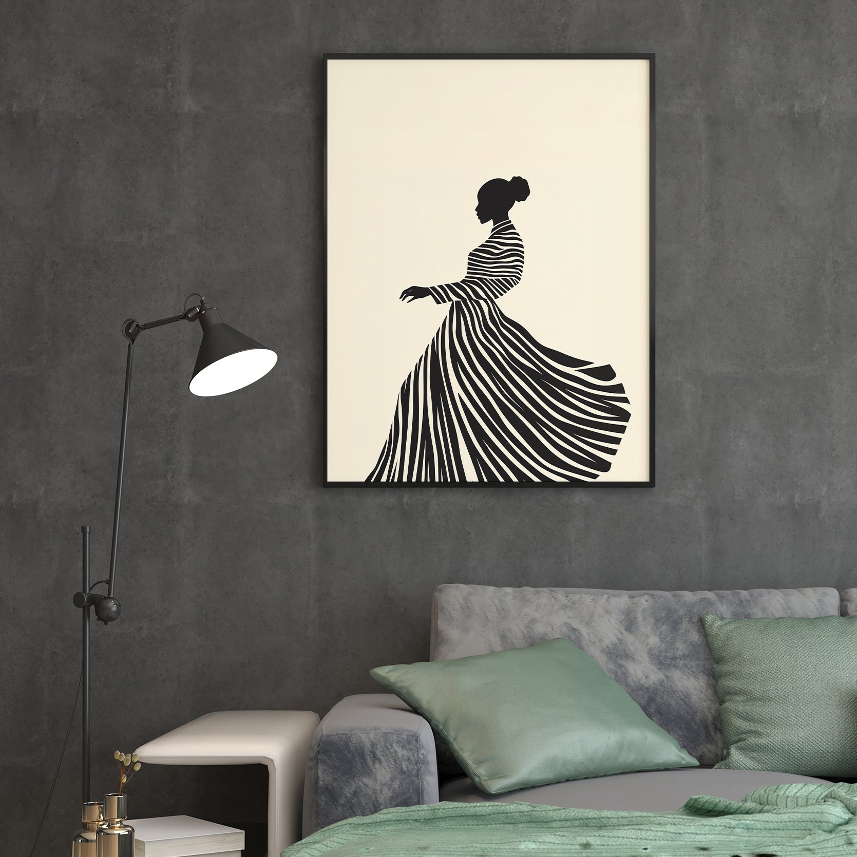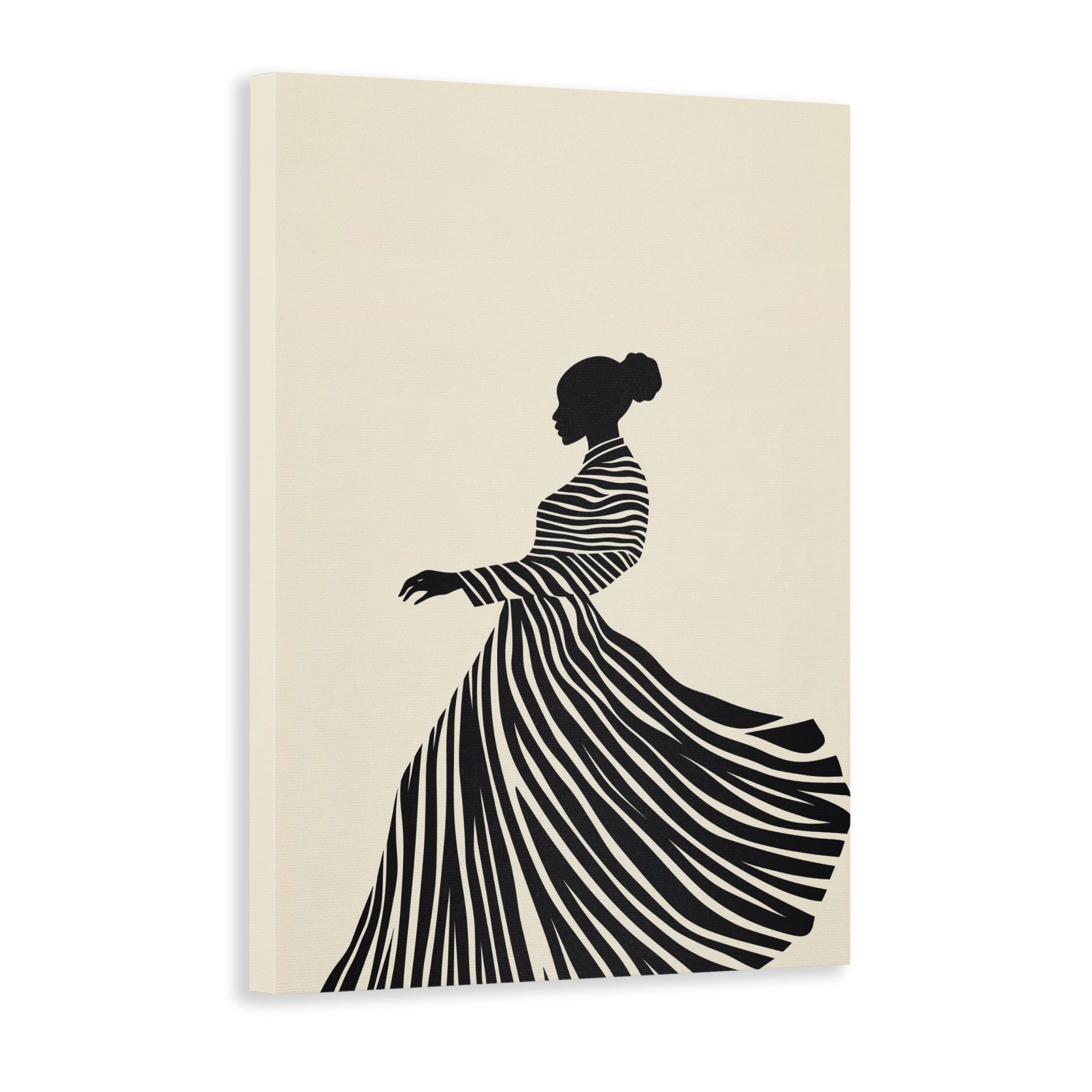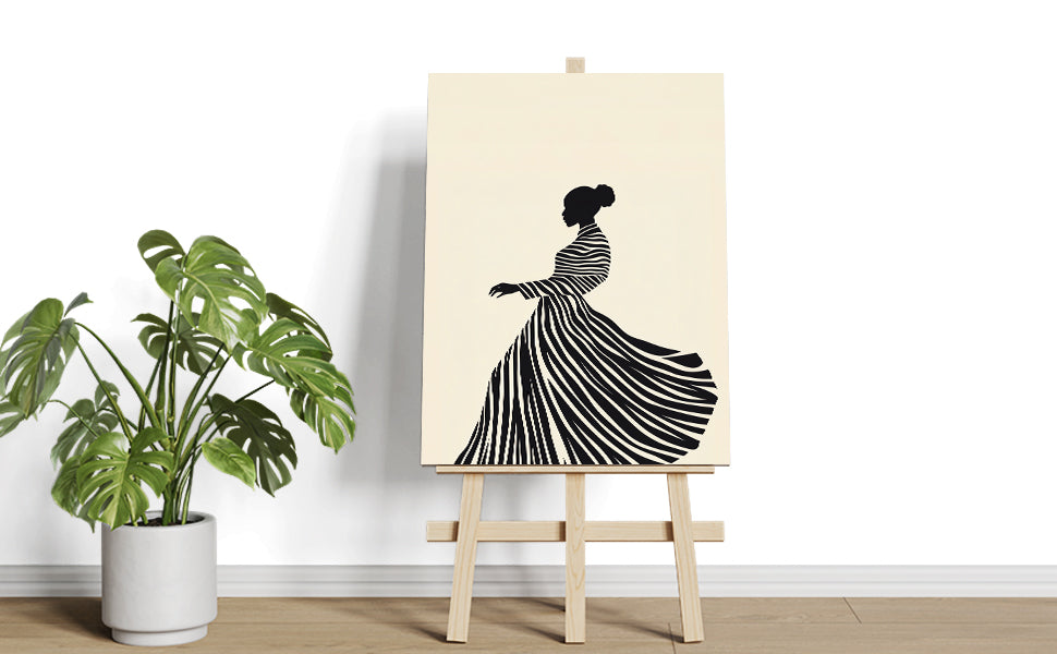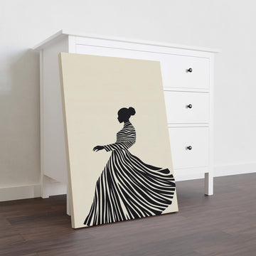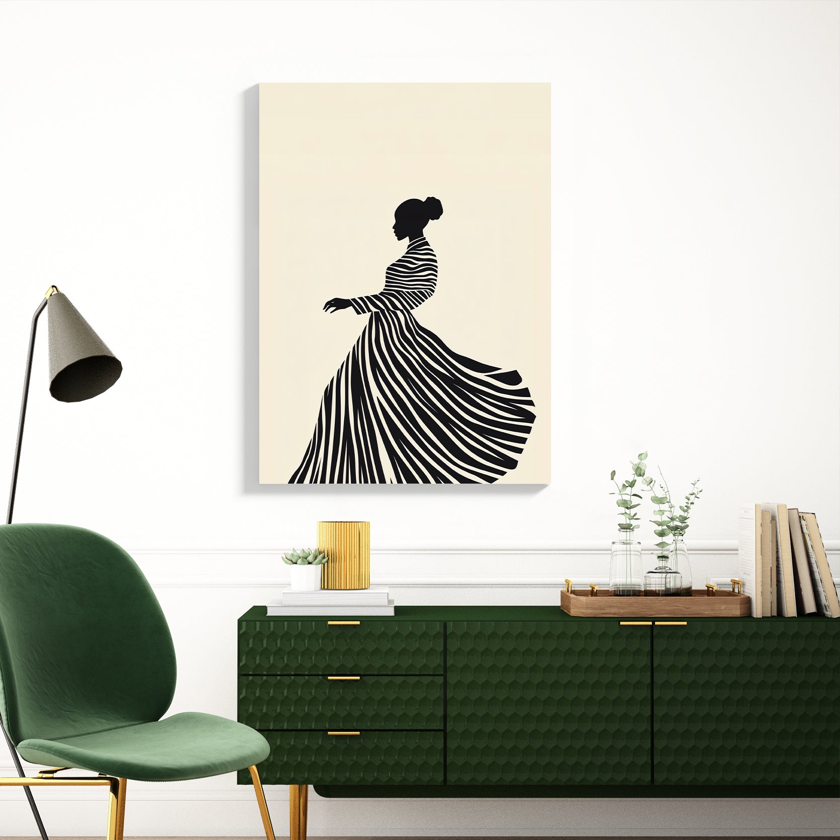 Modern Black and White Striped Dress Silhouette Wall Art Canvas Print - For Living Room, Sofa Backdrop, Bedside Decoration, Home Decor