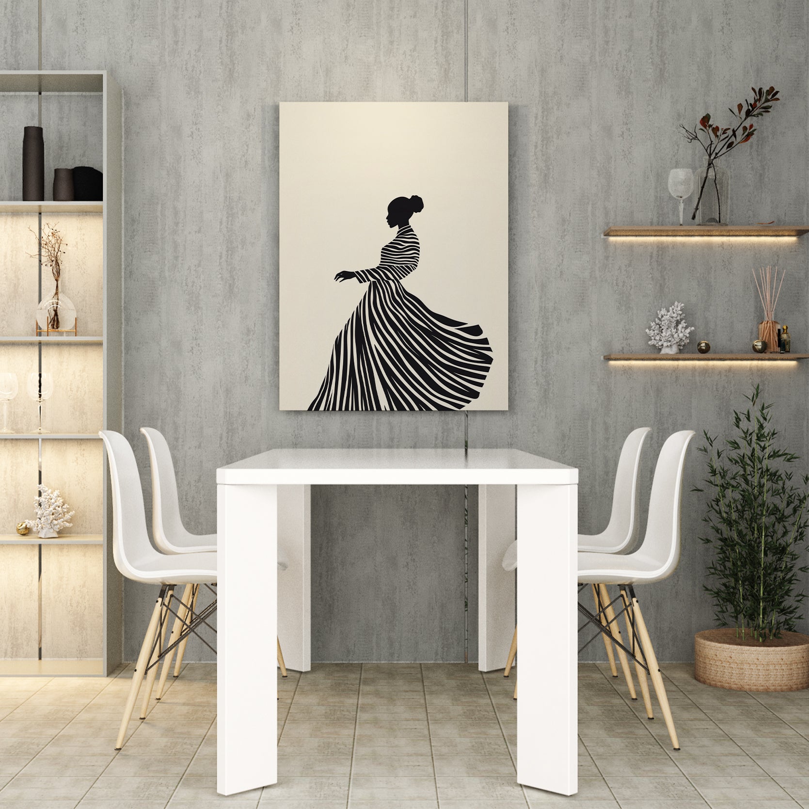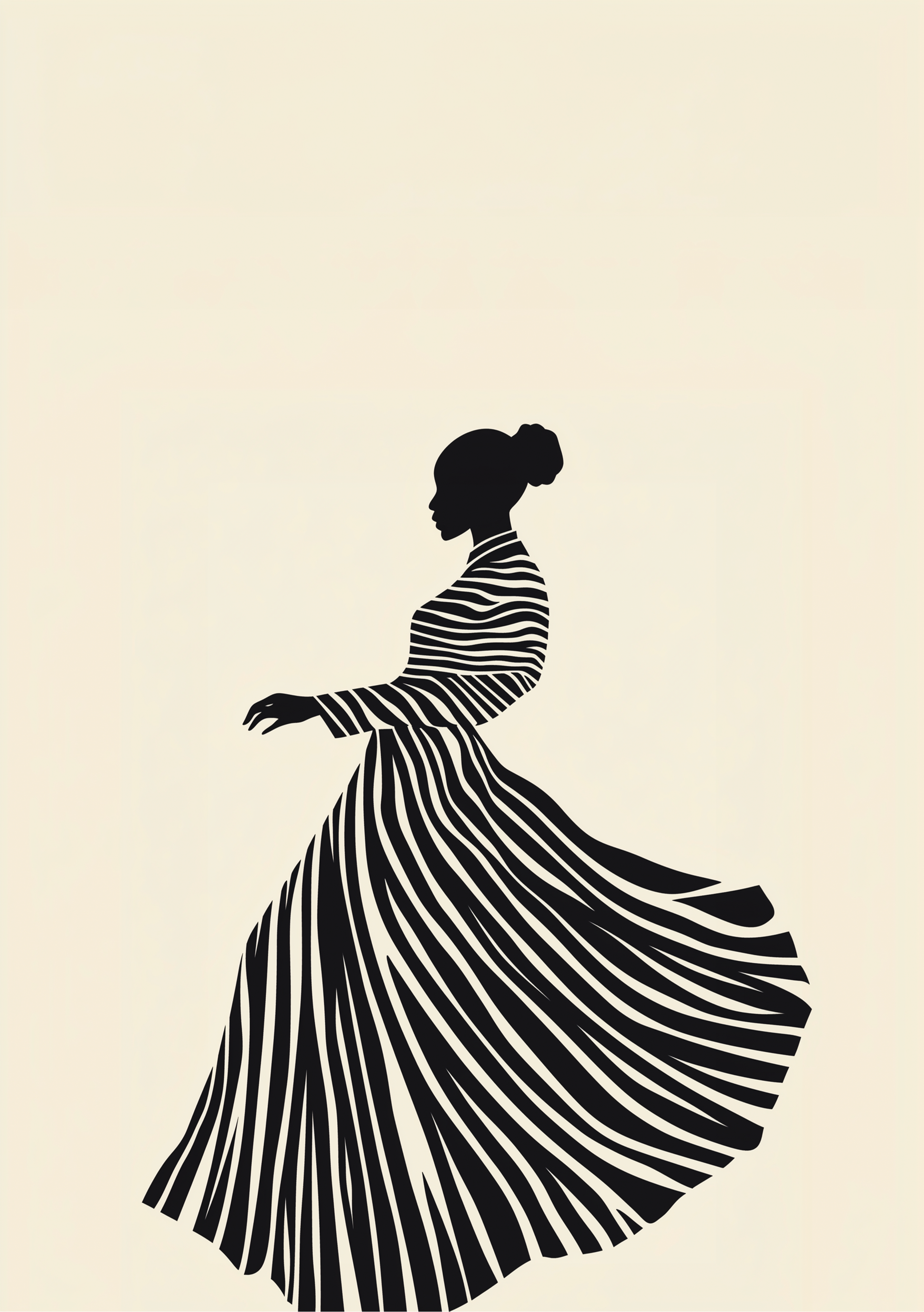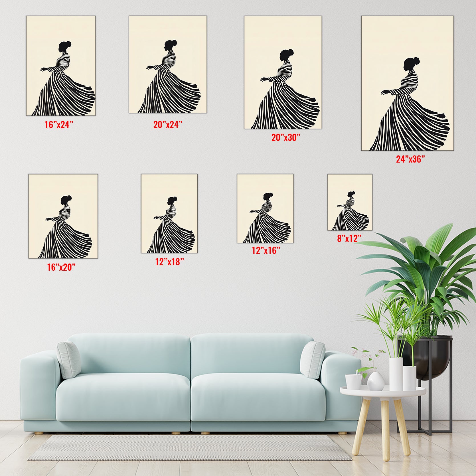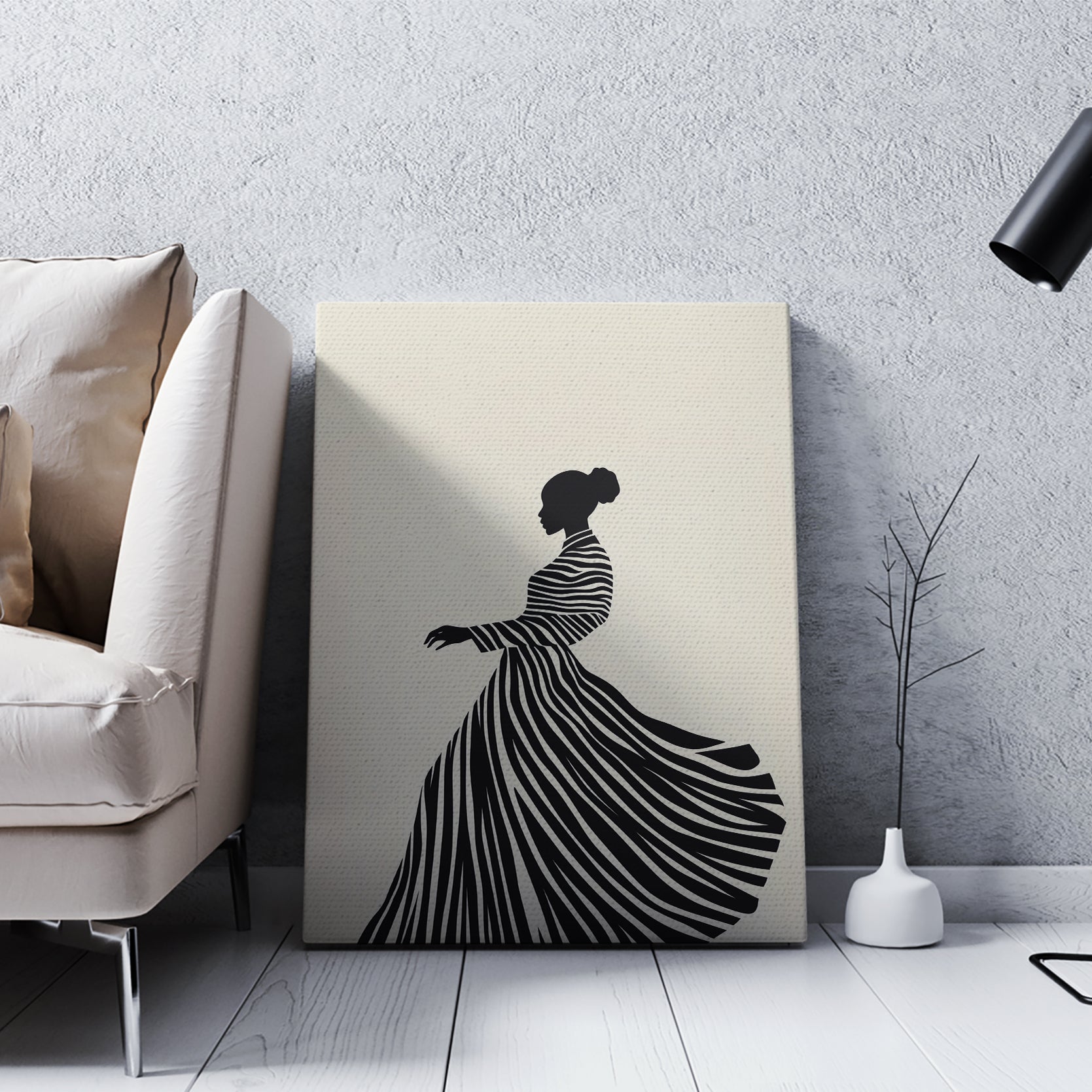 Modern Black and White Striped Dress Silhouette Wall Art Canvas Print - For Living Room, Sofa Backdrop, Bedside Decoration, Home Decor