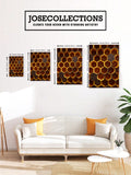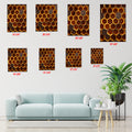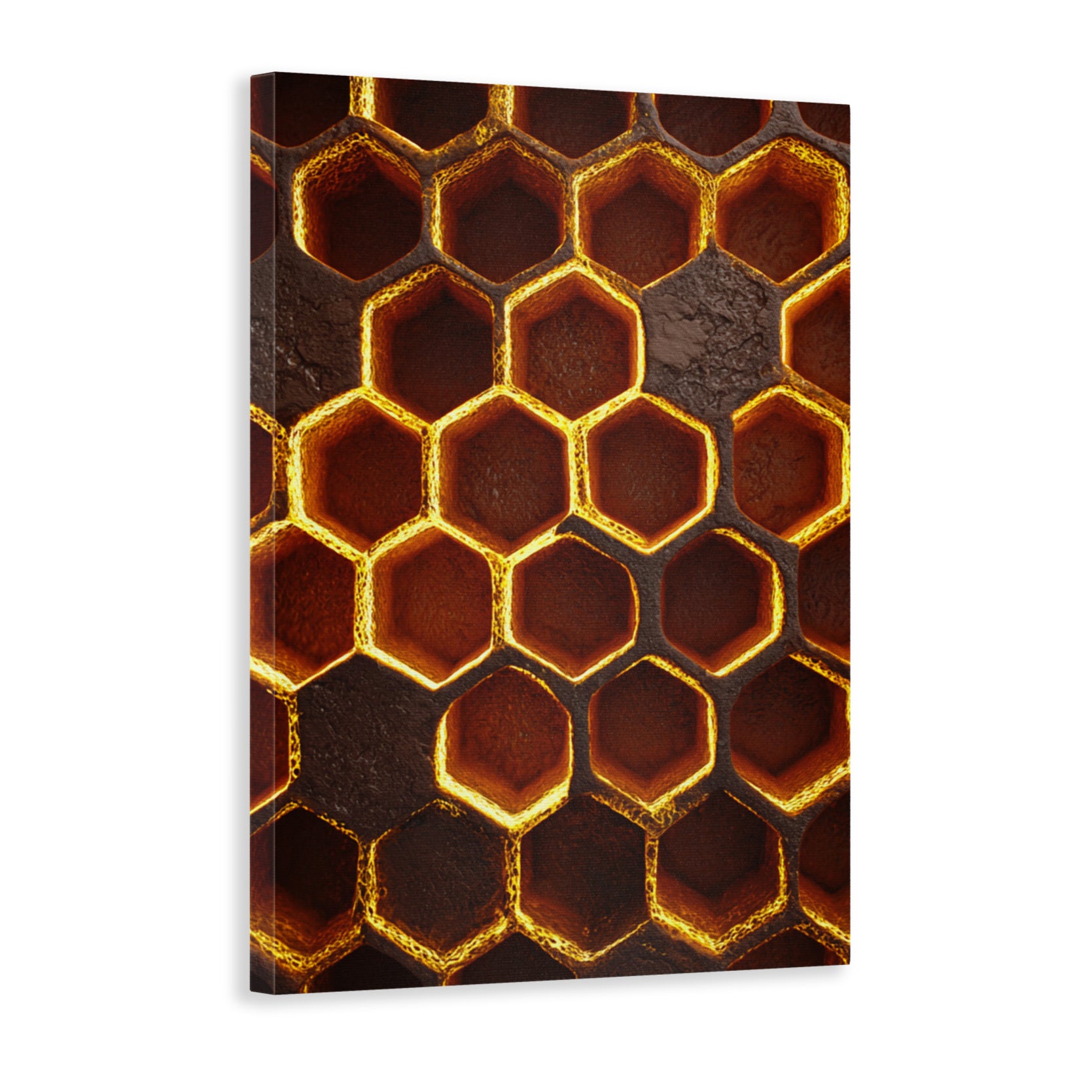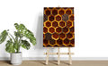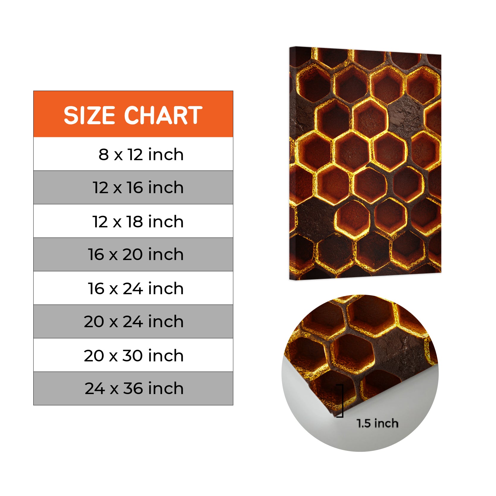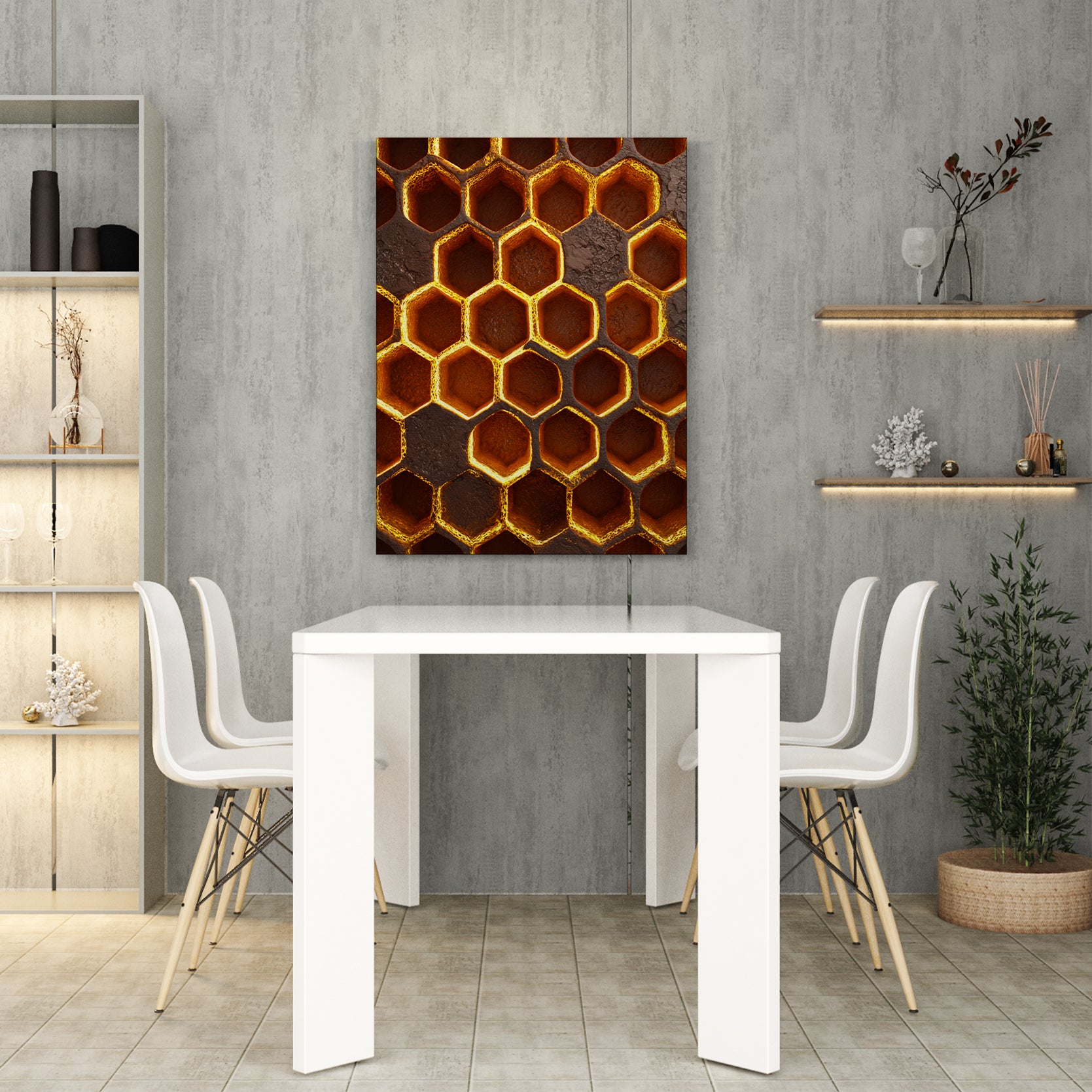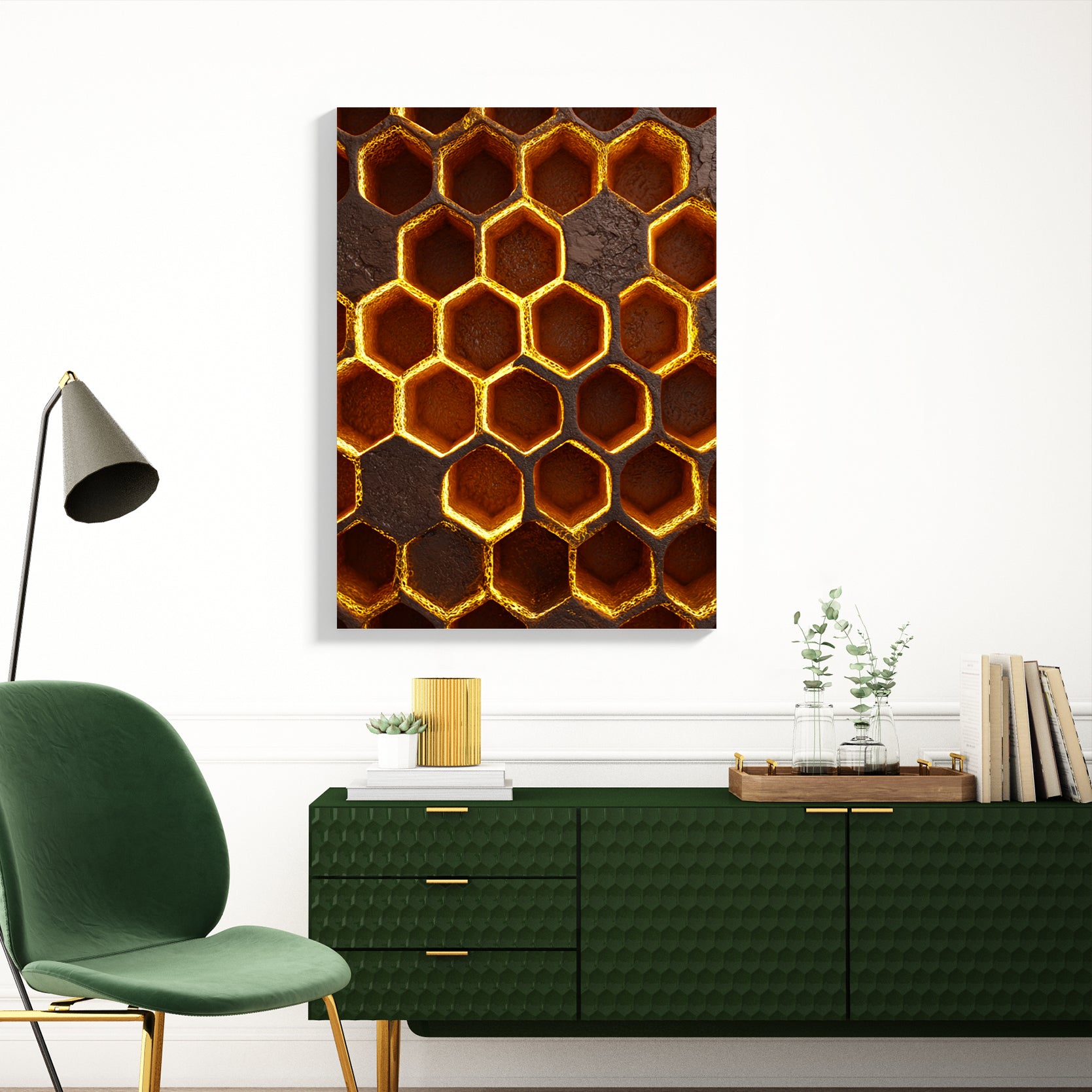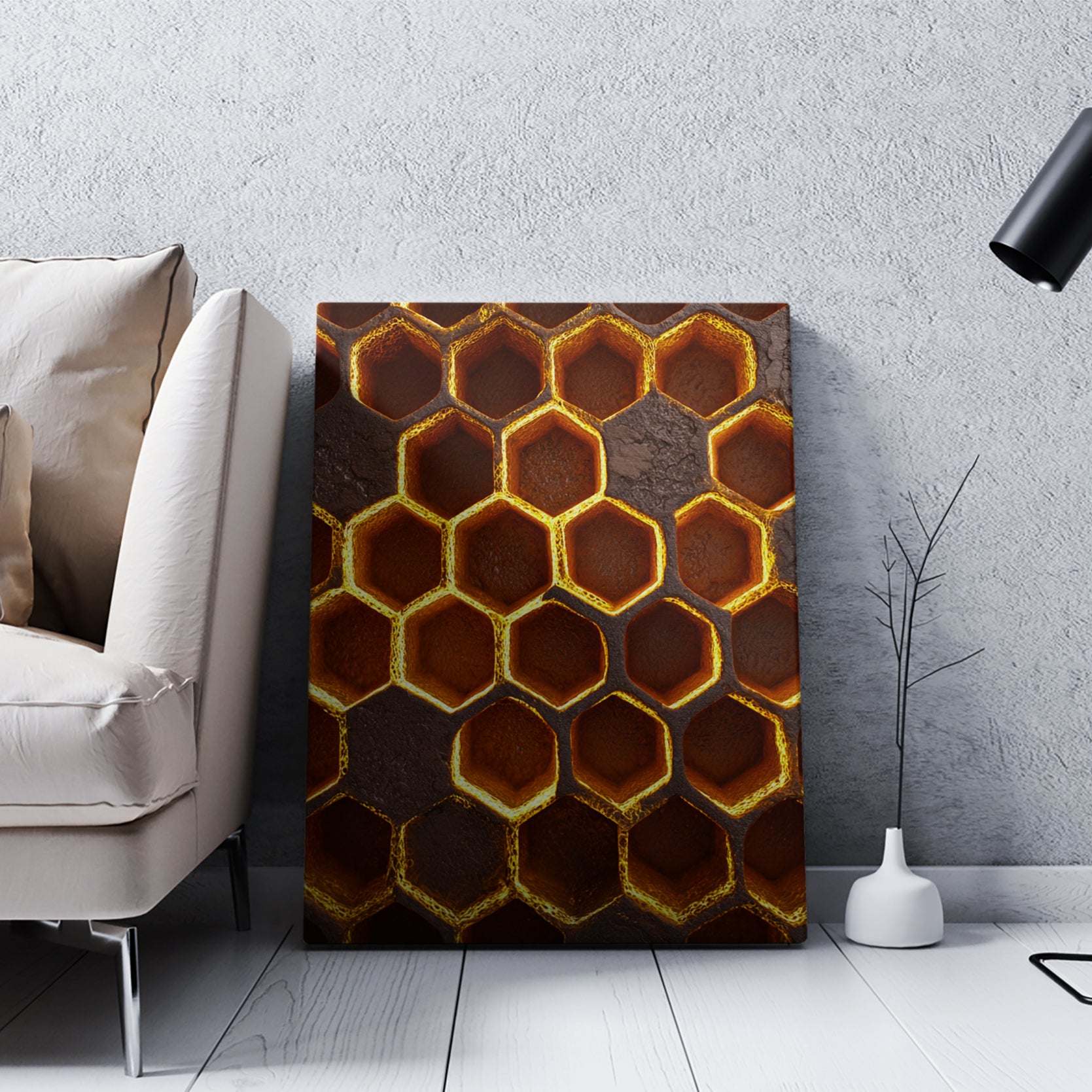 Elevate your interior with this striking modern canvas art featuring an intricate honeycomb pattern rendered in rich dark brown and gold tones. The geometric design brings contemporary sophistication to any room, whether displayed above your sofa, beside your bed, or as a focal point in your living space. The warm metallic accents complement various décor styles while the structured pattern adds visual interest without overwhelming your walls. Perfect for those seeking to infuse their home with artistic flair and refined elegance.