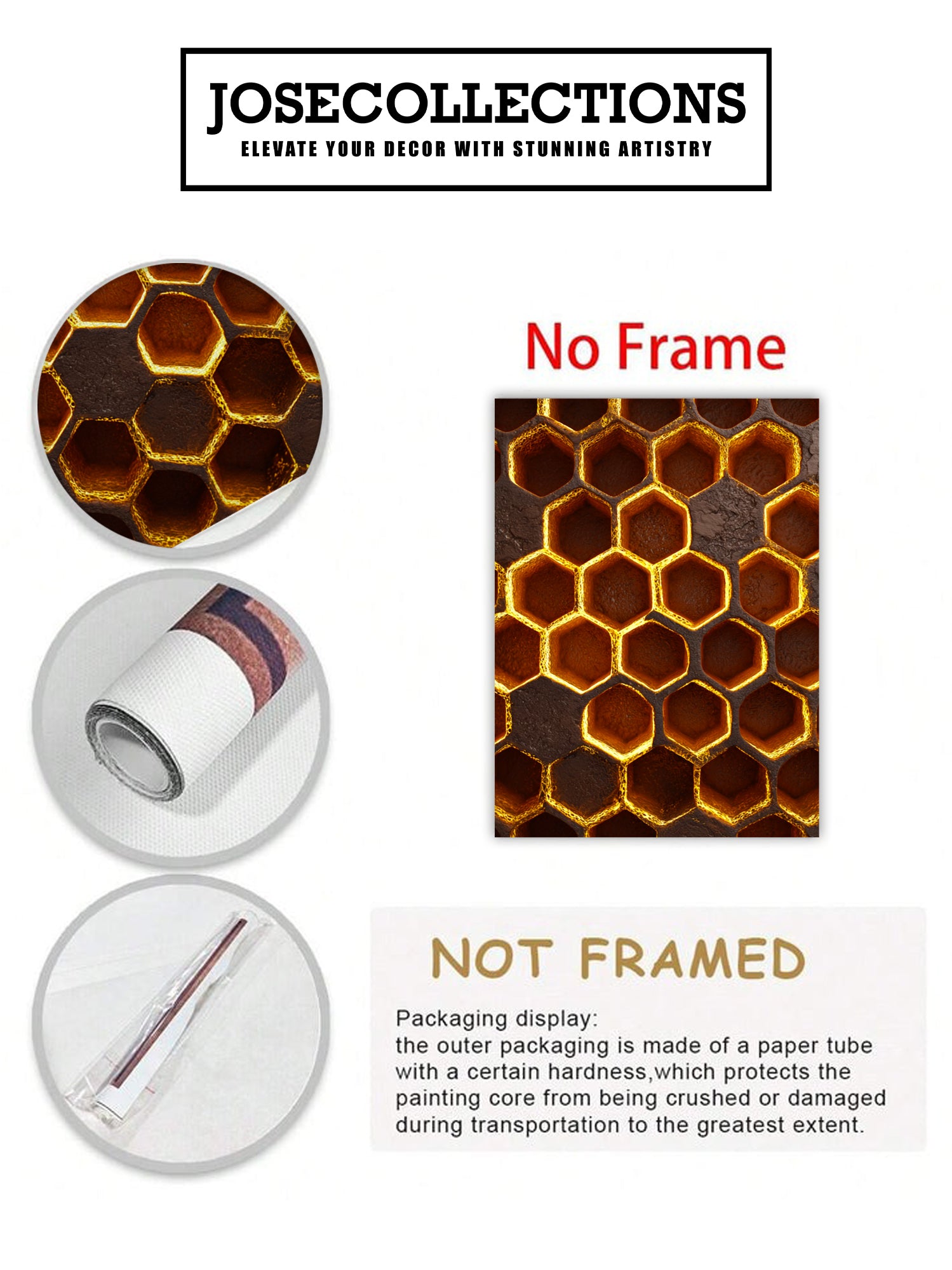 Modern Honeycomb Pattern Canvas Wall Art, Dark Brown and Gold - For Living Room, Sofa Backdrop, Bedside Decoration, Home Decor