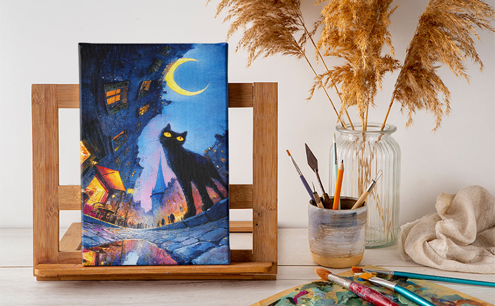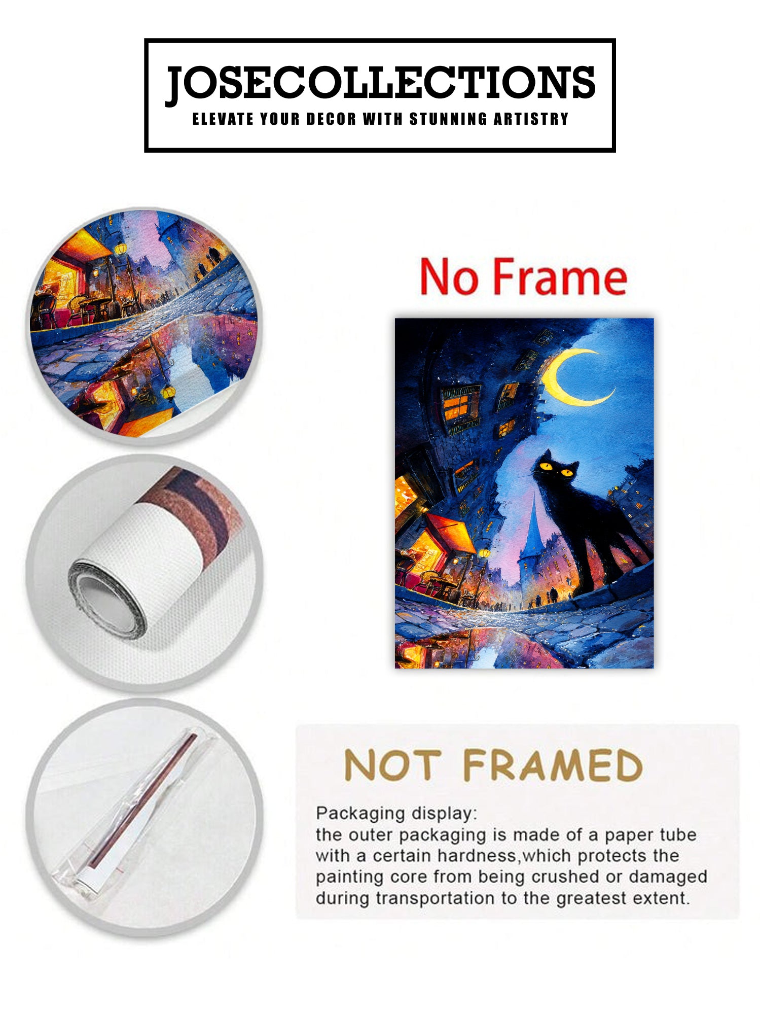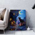 Mystical Black Cat Wall Art, Night City Canvas Print - For Living Room, Sofa Backdrop, Bedside Decoration, Home Decor