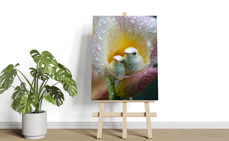 Nature Canvas Wall Art, Baby Birds in Dewy Flower - For Living Room, Sofa Backdrop, Bedside Decoration, Home Decor
