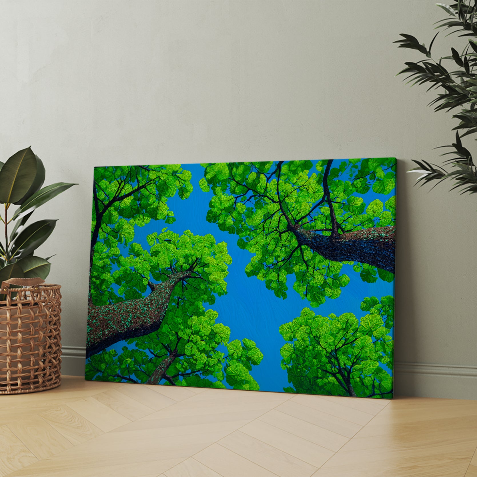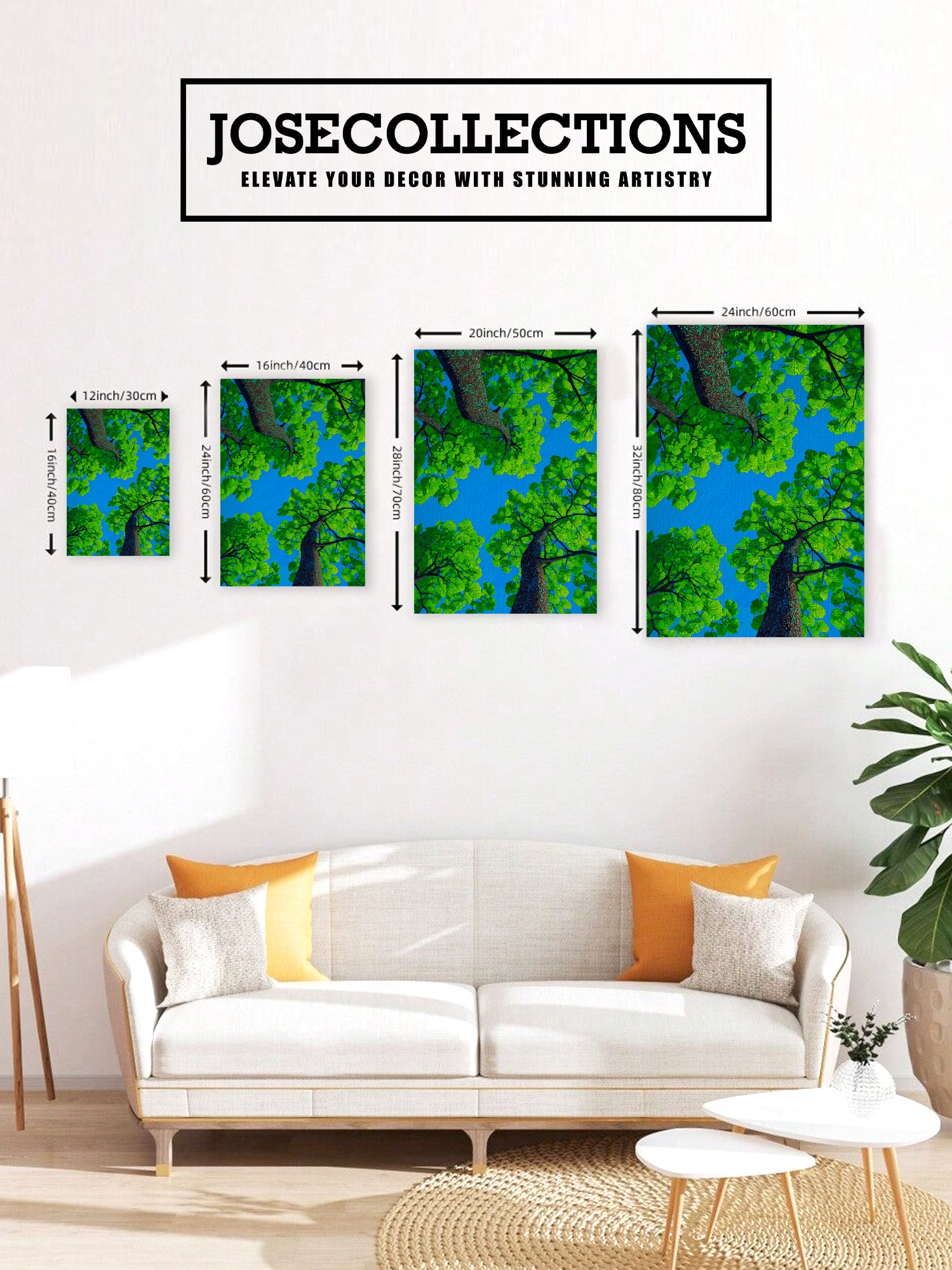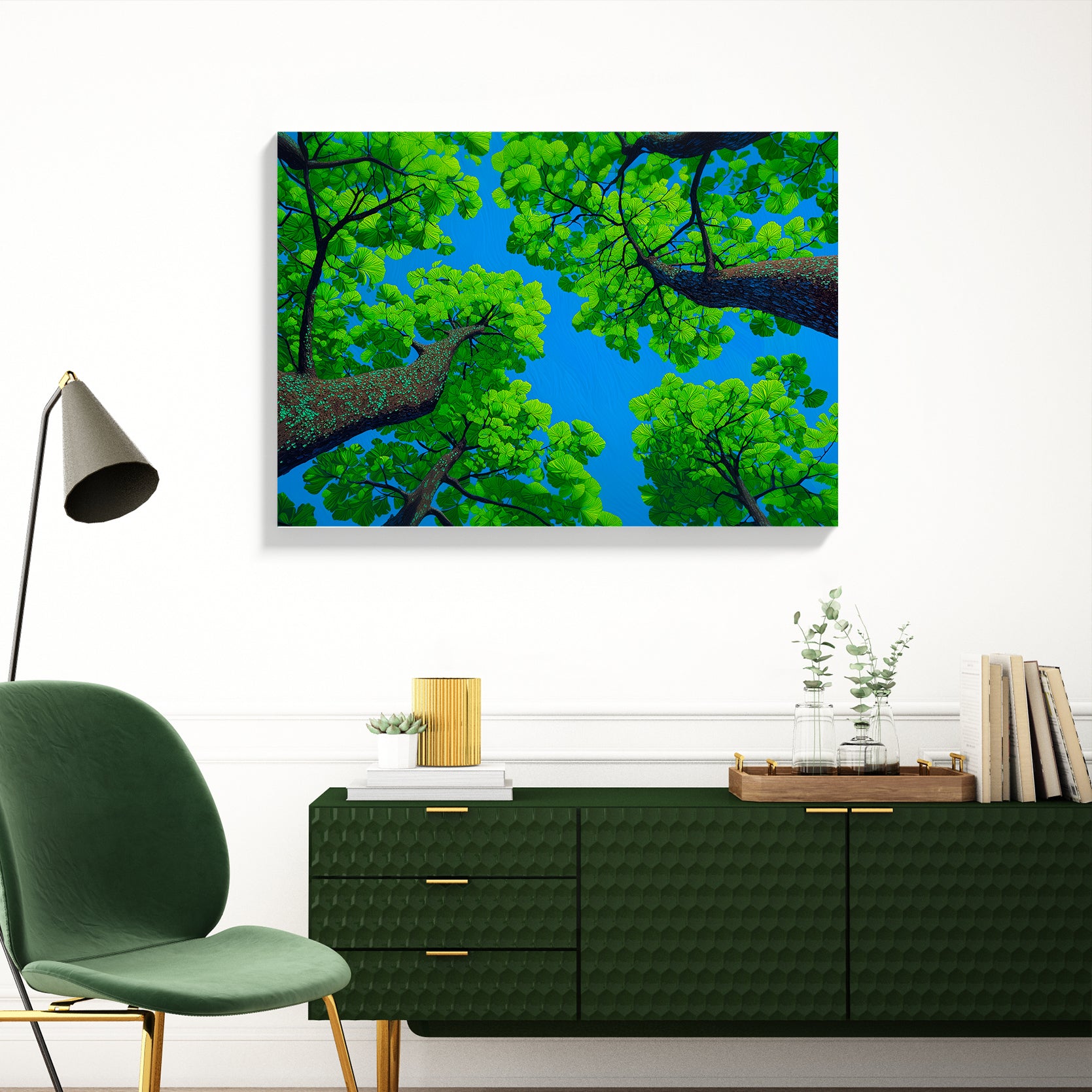 Nature Canvas Wall Art, Green Tree Branches with Blue Sky Background - For Living Room, Sofa Backdrop, Bedside Decoration, Home Decor