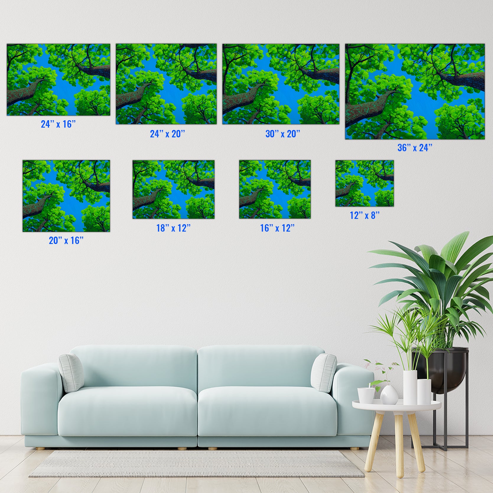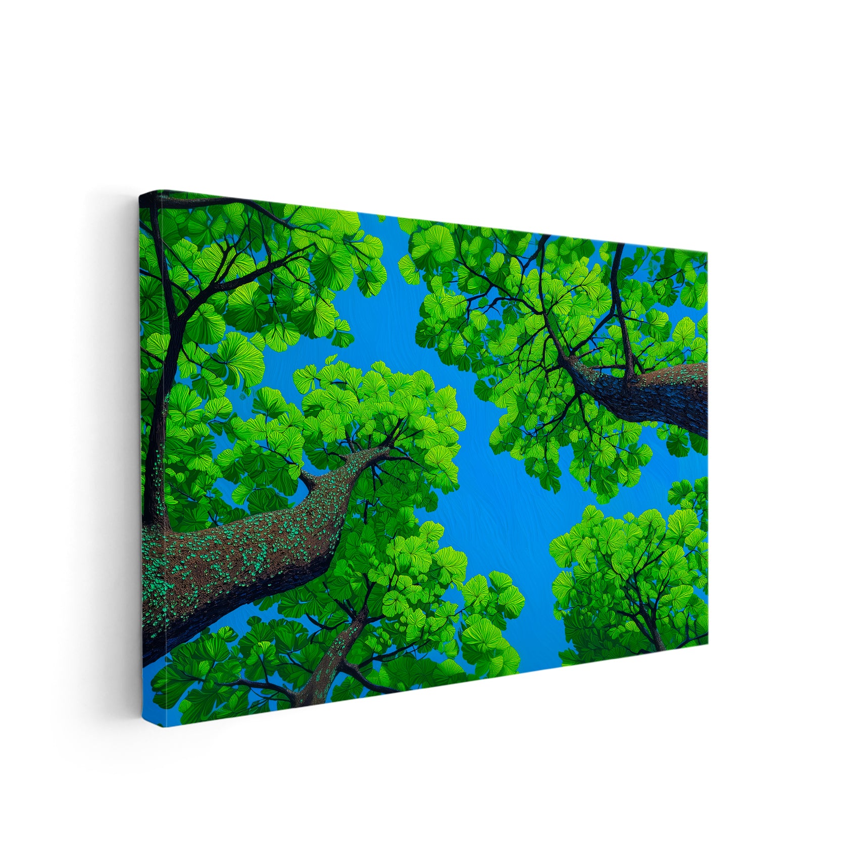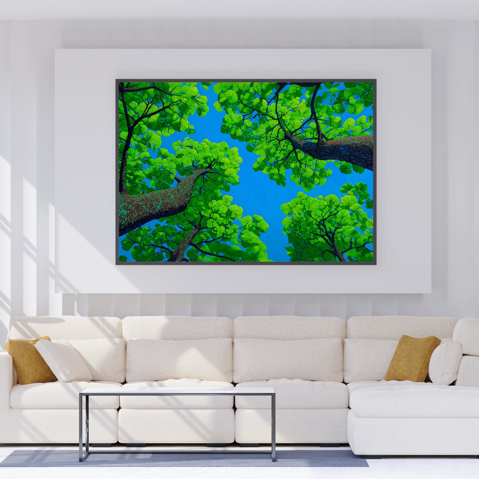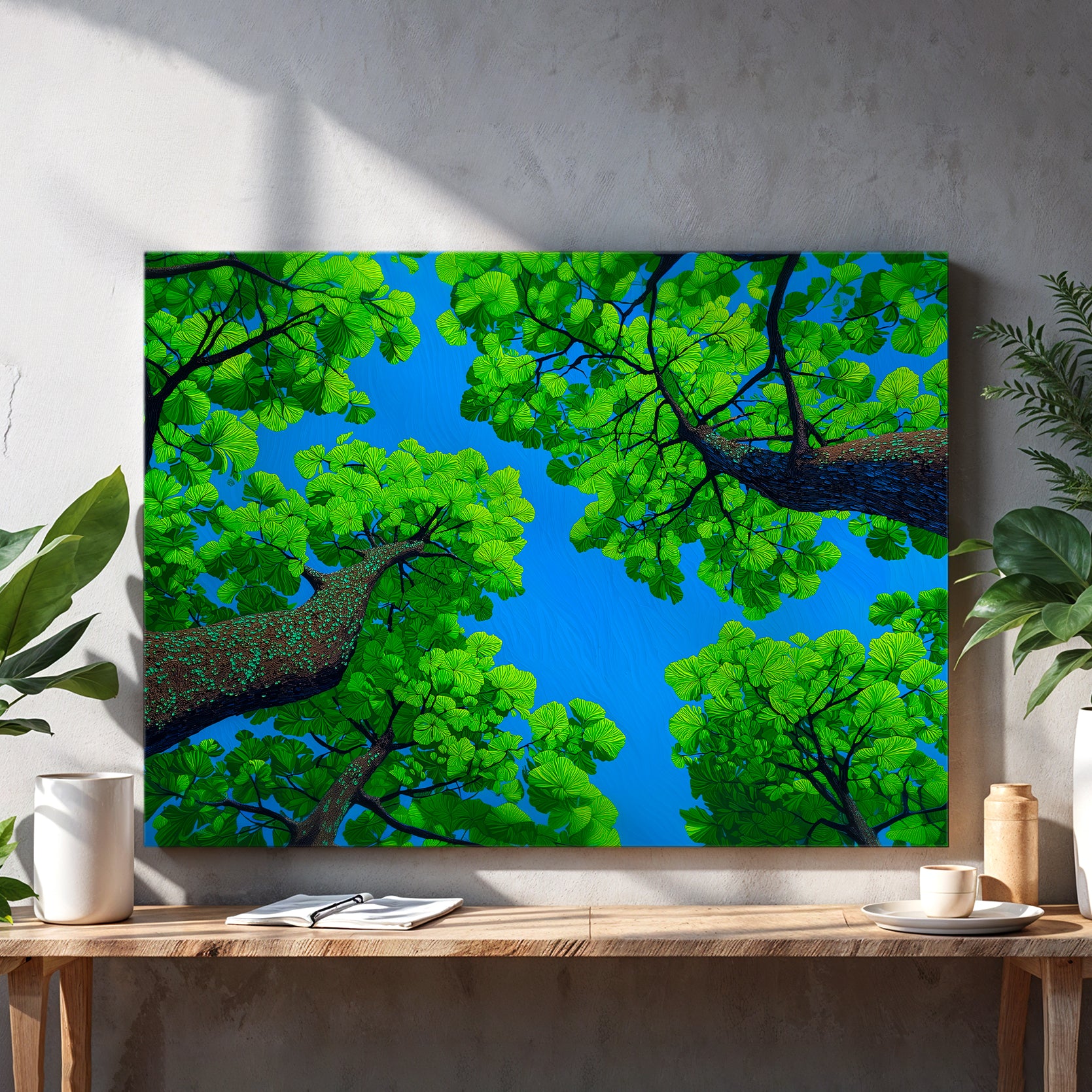 Nature Canvas Wall Art, Green Tree Branches with Blue Sky Background - For Living Room, Sofa Backdrop, Bedside Decoration, Home Decor